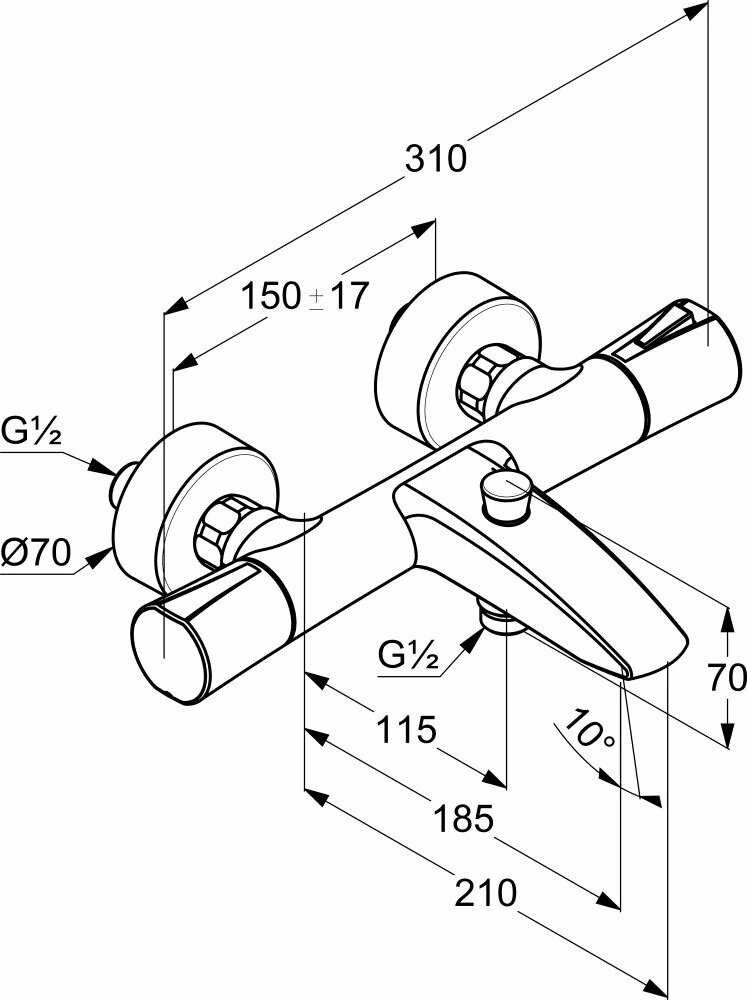 Стандарт подводки: G 1/2. В комплекте поставки: смеситель, комплект отражателей, крепления