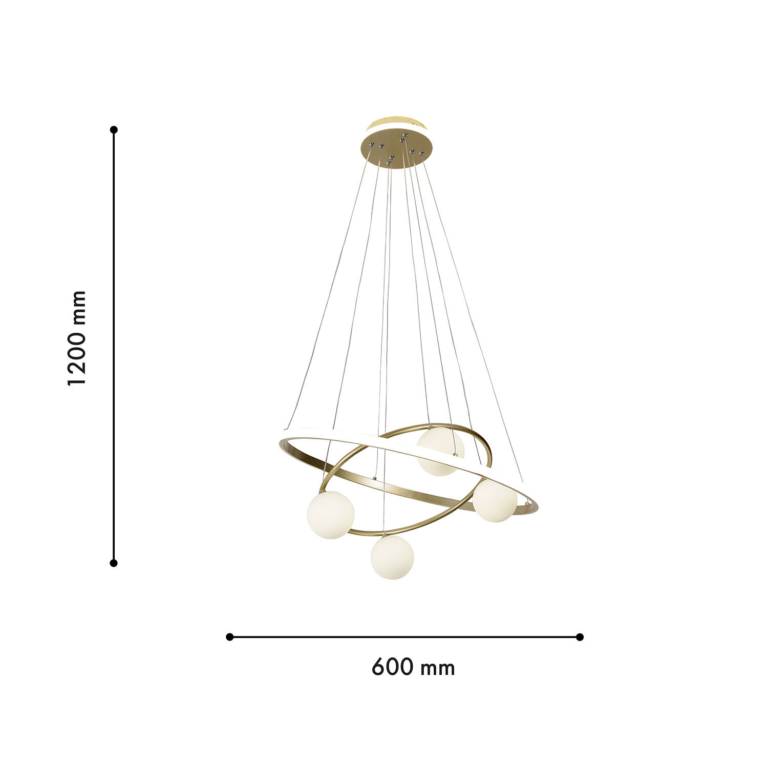 Подвесная люстра F-promo Orbium - стильное и функциональное освещение для вашего дома.Современный стиль модерн в сочетании с черным и белым цветами. Металлический каркас и кольцо со встроенной лентой LED переплетаются с кольцом из металлической трубки, в которую инсталлированы плафоны в виде шара. Потолочное основание также оформлено лентой LED по кругу.Люстра оснащена пультом дистанционного управления, что позволяет легко и быстро регулировать освещение. В комплекте идут 6 плафонов, каждый из которых имеет мощность 10 Вт и цоколь G9.Размеры люстры составляют 120x60x15 см, а вес - 2,7 кг. Она предназначена для установки на монтажную пластину и подходит для гостиной, кабинета или спальни. Площадь освещения составляет 30 м².Люстра F-promo Orbium изготовлена в Германии и соответствует классу электробезопасности I и степени пылевлагозащиты 20. Напряжение составляет 220-240 В, а цветовая температура - 6000 К.