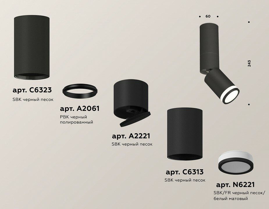 Комплект накладного светильника Ambrella light Techno Spot SBK/FR черный песок/белый матовый (C6323A2061A2221C6313N6221) XM6313120
