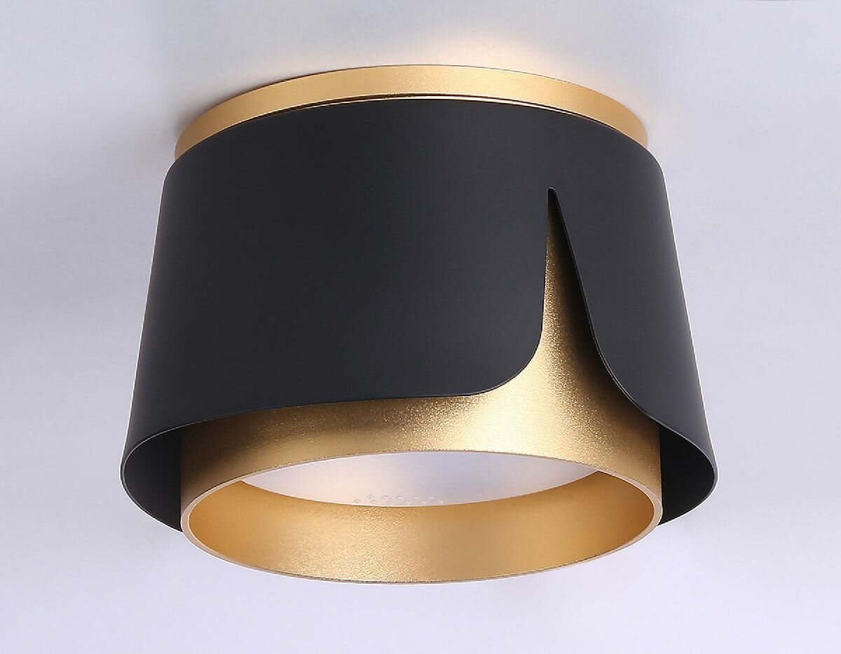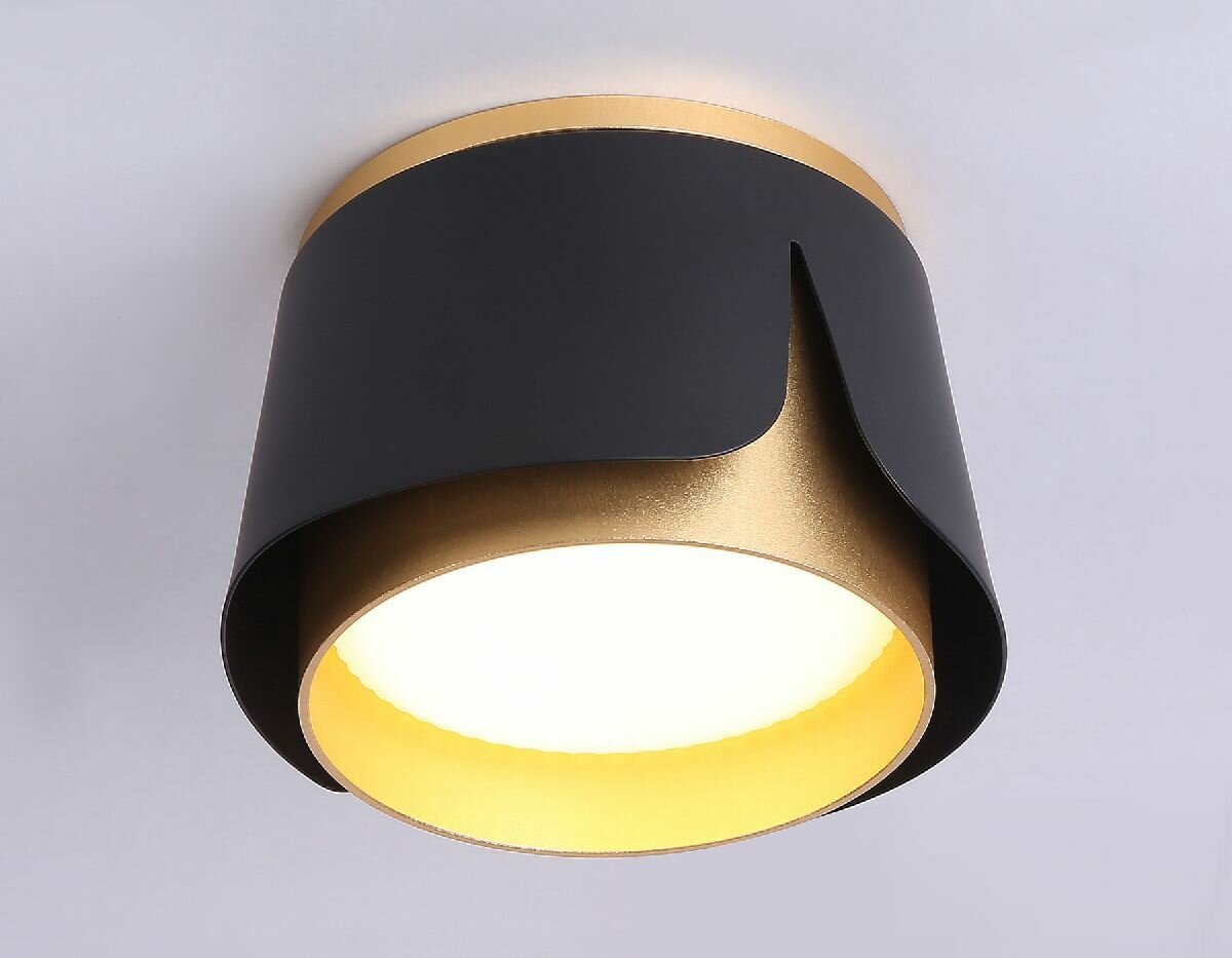 Накладной светильник Ambrella Light Techno family бренда Ambrella Light из Китая коллекции Techno family в стиле Современный. Одна из зон рекомендованных к размещению (необязательно) В прихожую. Место расположения - На потолок. Материал плафона/абажура - Металл. Цвет плафона/абажура - Золото. Форма плафона - Конусный. Направление абажуров/плафонов: Вниз. Количество плафонов/абажуров - 1. Материал арматуры - Металл. Цвет арматуры - Черный. Подходит для натяжных потолков: Да. Тип подключаемых ламп: Светодиодная цоколя GX53. Мощность лампы, W: 12. Общая мощность, W: 12. Количество ламп - 1. Напряжение - 220. Степень защиты (IP): 20. Высота, мм - 66. Диаметро, мм - 100