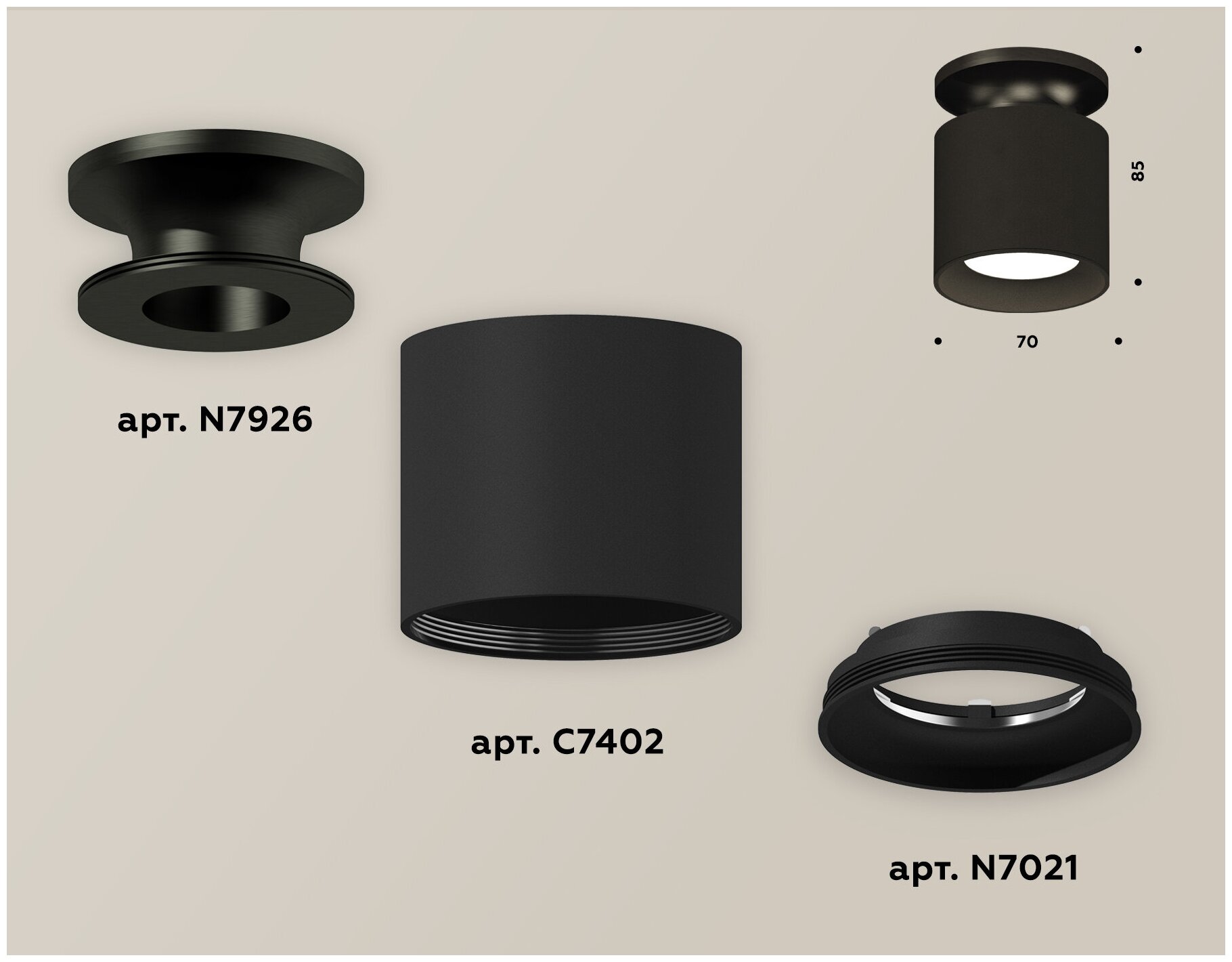 Комплект накладного светильника Ambrella light Techno Spot SBK/PBK черный песок/черный полированный (N7926 C7402 N7021) XS7402063
