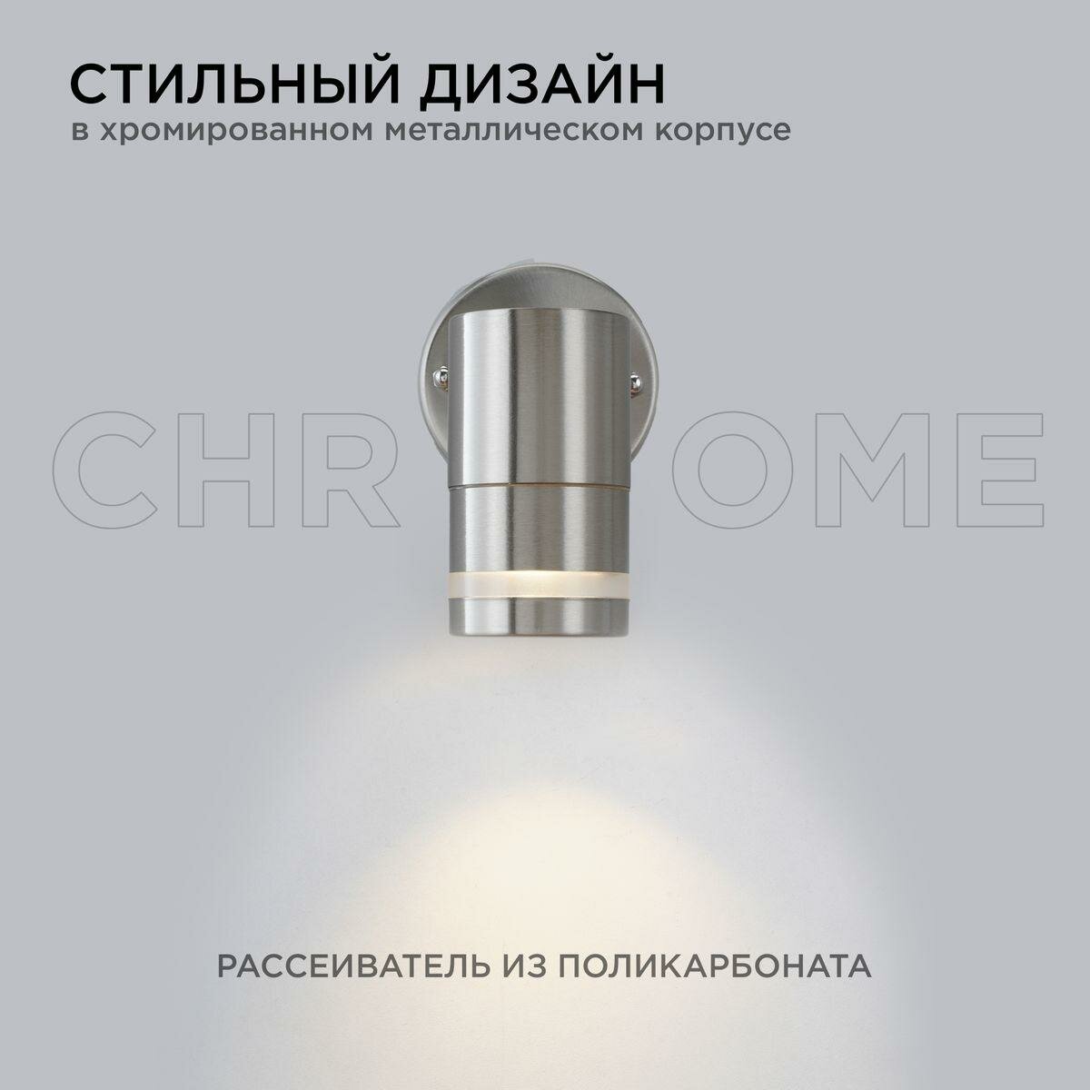 Светильник уличный с артикулом 11-110 серии Chrome выполнен в современном стиле. Предназначен для общего и декоративного освещения садовых дорожек, декоративных лужаек, скверов, загородных участков, фасадов зданий. Корпус светильника изготовлен из металла, а рассеиватель ― из поликарбоната. Материалы светильника показывают отличную устойчивость к механическим повреждениям, воздействию температуры и солнечного света. Корпус выполнен в классическом цвете хром, который впишется в любую обстановку. Данное изделие имеет размер 95х57х130 мм и предназначено для монтажа на стену. Источником свечения выступает галогенная или светодиодная лампа с цоколем типа 1хGU10 и максимальной мощностью 15 Вт (приобретается отдельно). Светильник работает от сети 230 Вольт и не требует дополнительных устройств при подключении. В комплект входят 2 дюбеля и 2 винтовых самореза. Степень пылевлагозащиты изделия IP54.Преимущества:- Универсальный цвет корпуса;- Корпус не подвержен коррозии;- Подходит для садово-парковых зон;- Крепежи в комплекте;- Под галогенную или светодиодную лампу;- Долгий срок службы более 50 000 часов;- Гарантия 3 года.