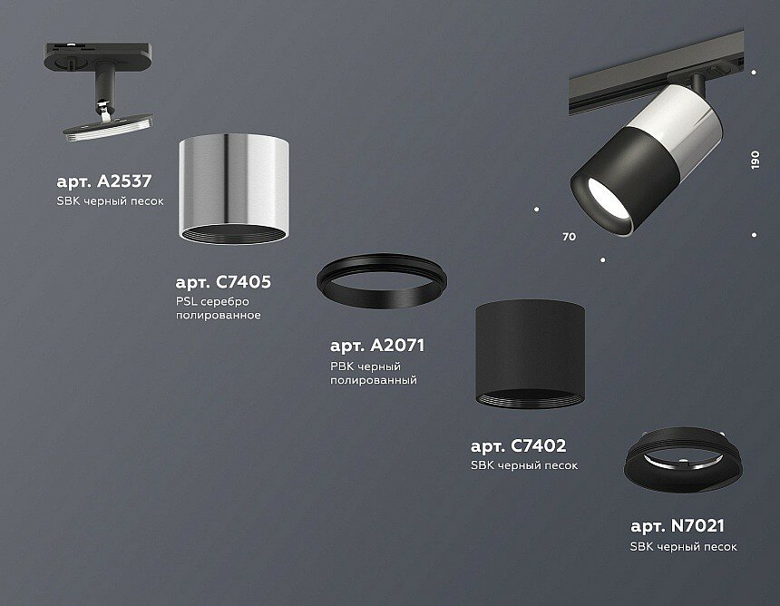 | Дополнительные характеристики | крепеж трековый D70, корпус накладной D70*2шт, коннектор D70, насадка передняя D70 |