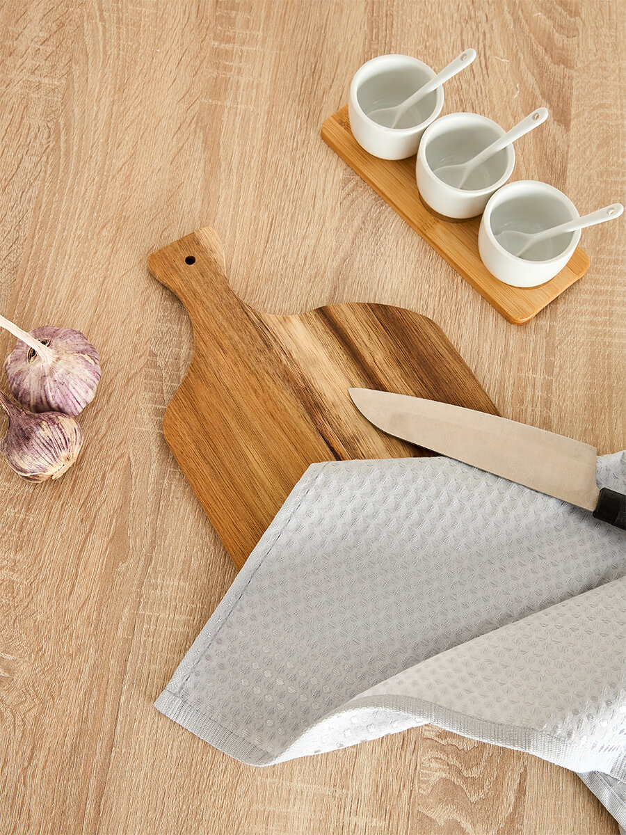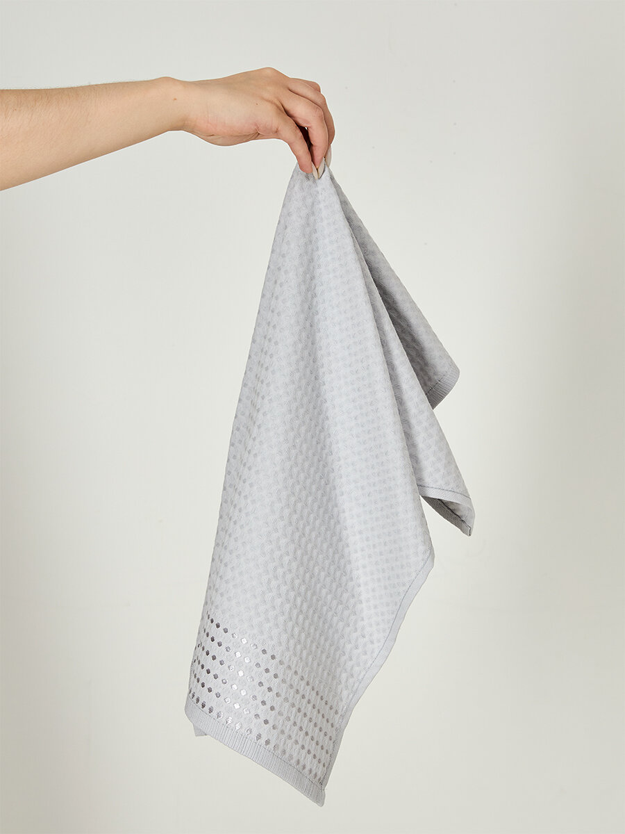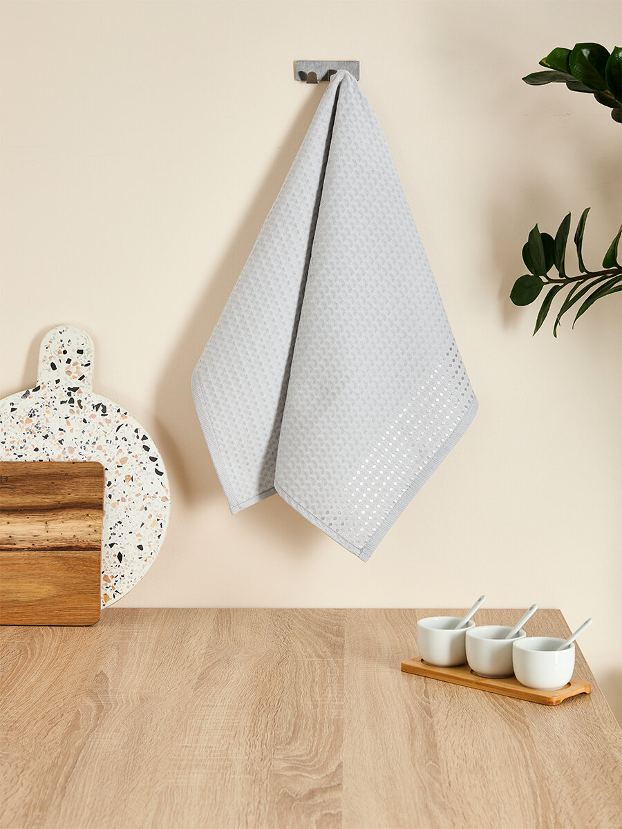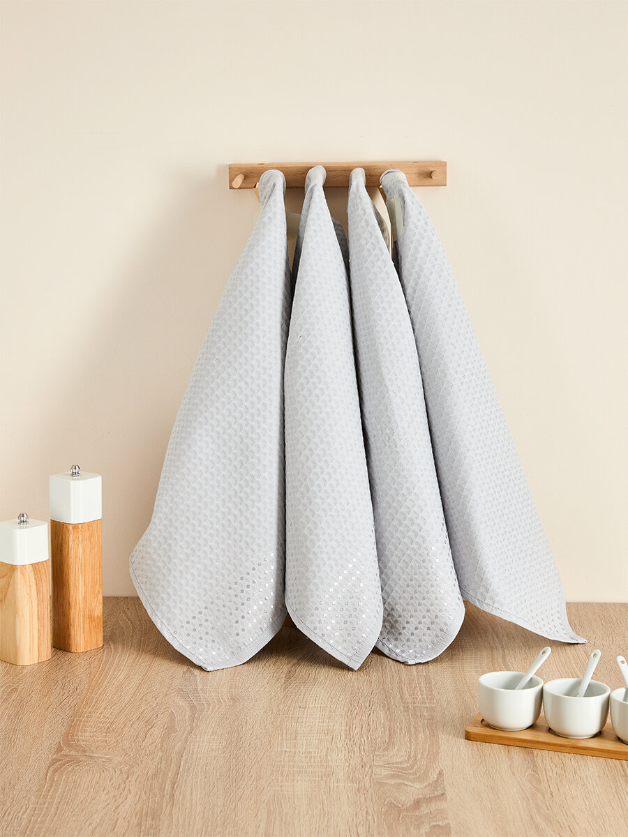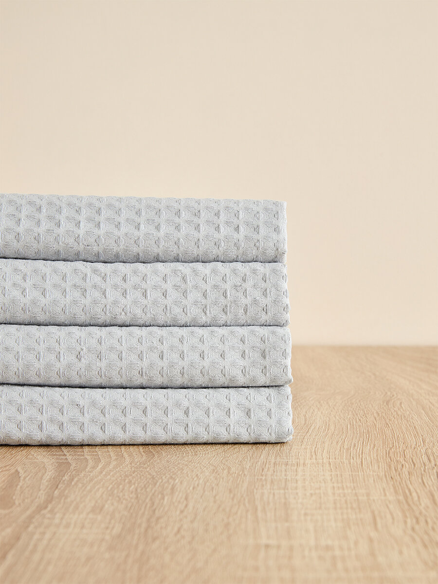 Набор из четырех однотонных вафельных полотенец от Cozy Home серого цвета. Размер полотенец 70 см на 50 см.