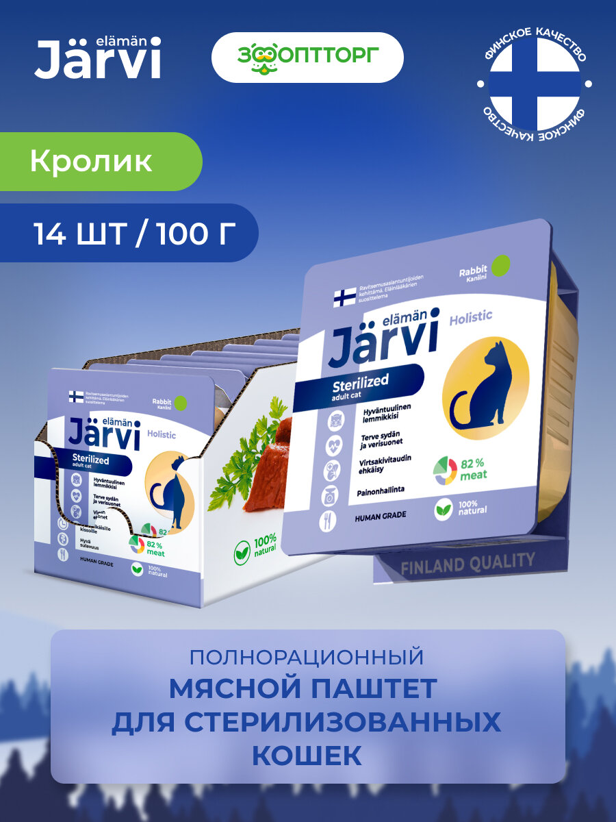 Сервис сравнения цен СкидкаГИД предлагает сравнить цены на товар «Jarvi мясной паштет с кроликом для стерилизованных кошек (100 г.)»