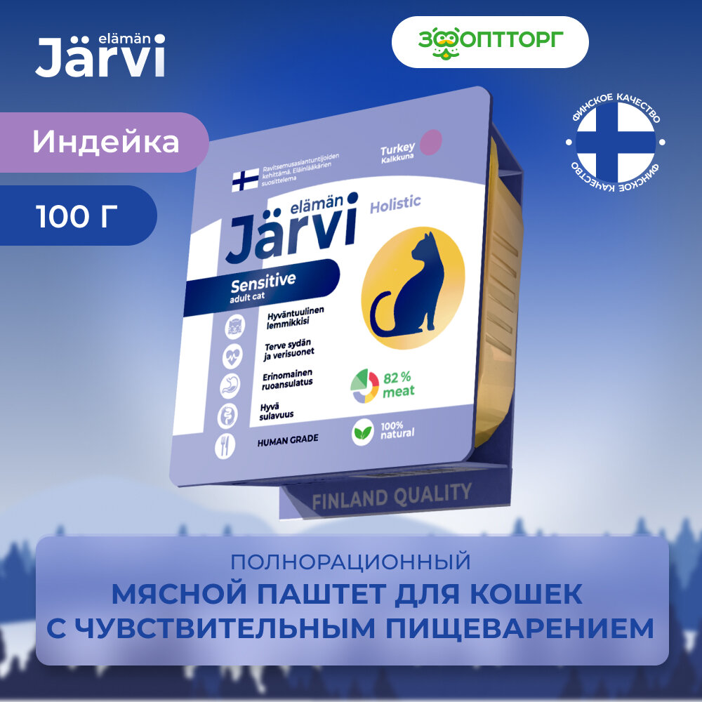 Jarvi мясной паштет с индейкой для кошек с чувствительным пищеварением (100 г.)