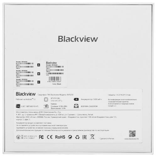 | Дополнительные особенности | Смартфон Blackview BV9200 256 ГБ выполнен в усиленном корпусе из пластика и металла. Соответствие стандартам защищенности IP68/IP69K делает его устойчивым к проникновению пыли и воды. Стекло Corning Gorilla Glass 5 защищает от царапин и других дефектов. О |