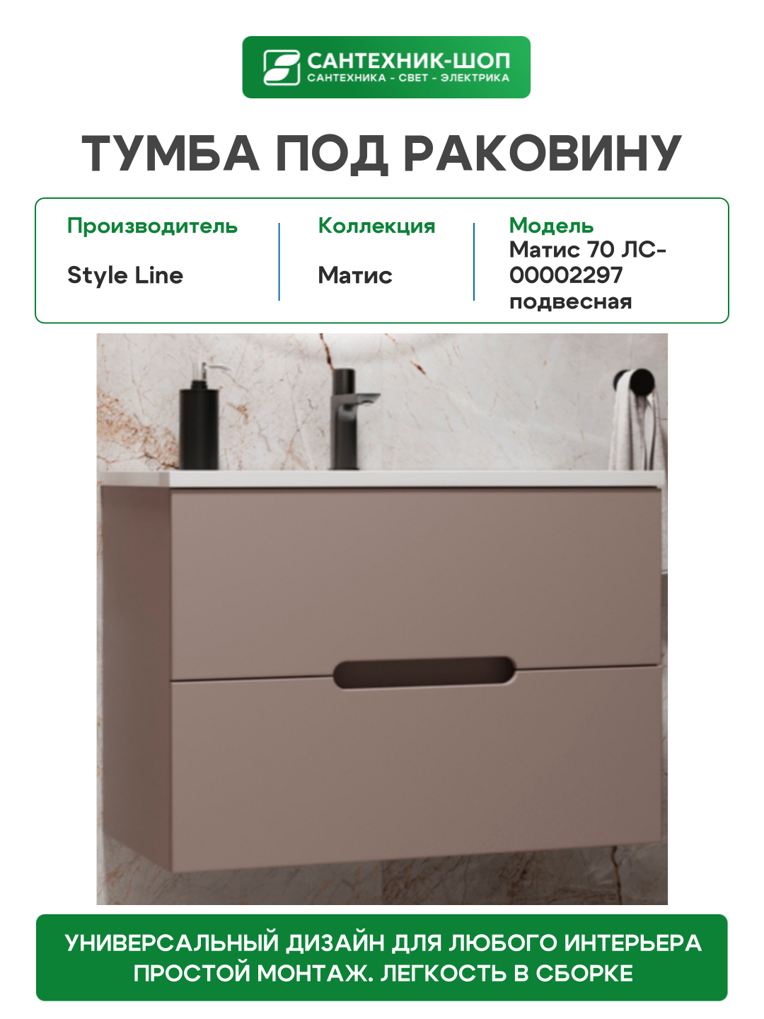 Сервис сравнения цен СкидкаГИД предлагает сравнить цены на товар «Тумба под раковину Style Line Матис 70 см ЛС-00002297 тауп темный»