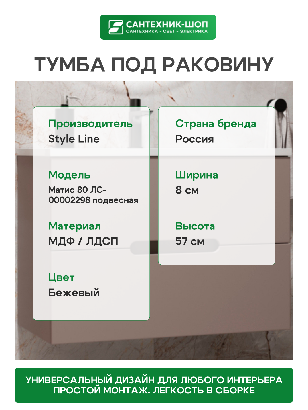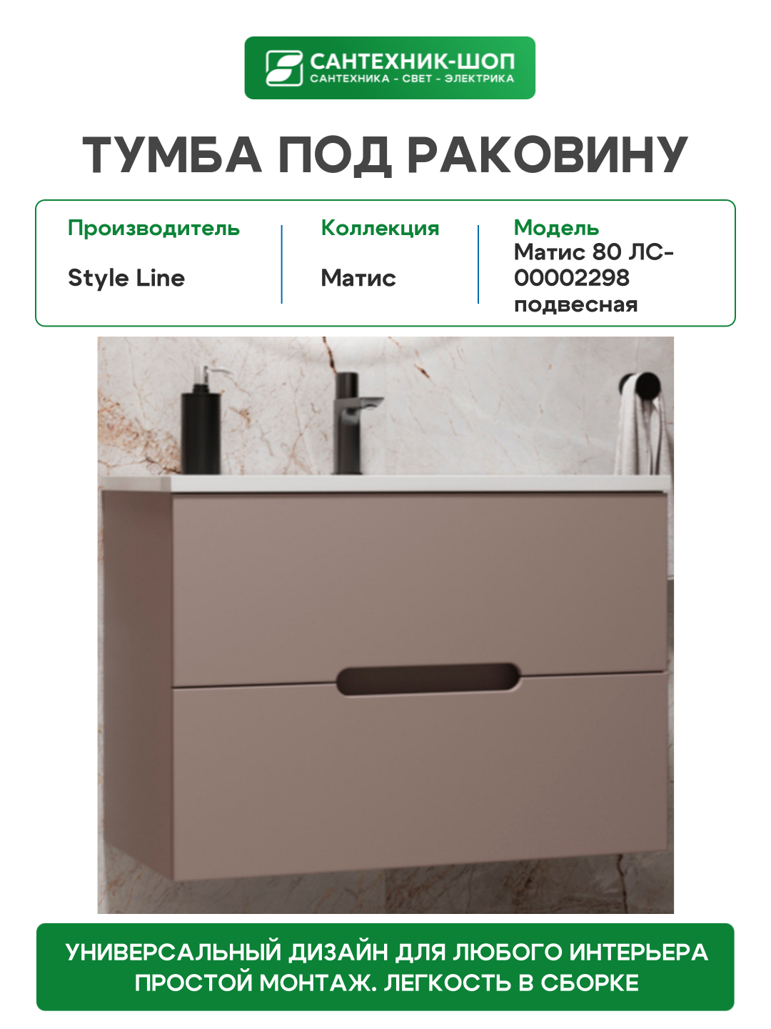 На сегодняшний день товар «Тумба под раковину Style Line Матис 80 см ЛС-00002298 тауп темный» можно купить с кешбеком в 3 магазинах: dushevoi, Сантехника Тут, Santehnika-room