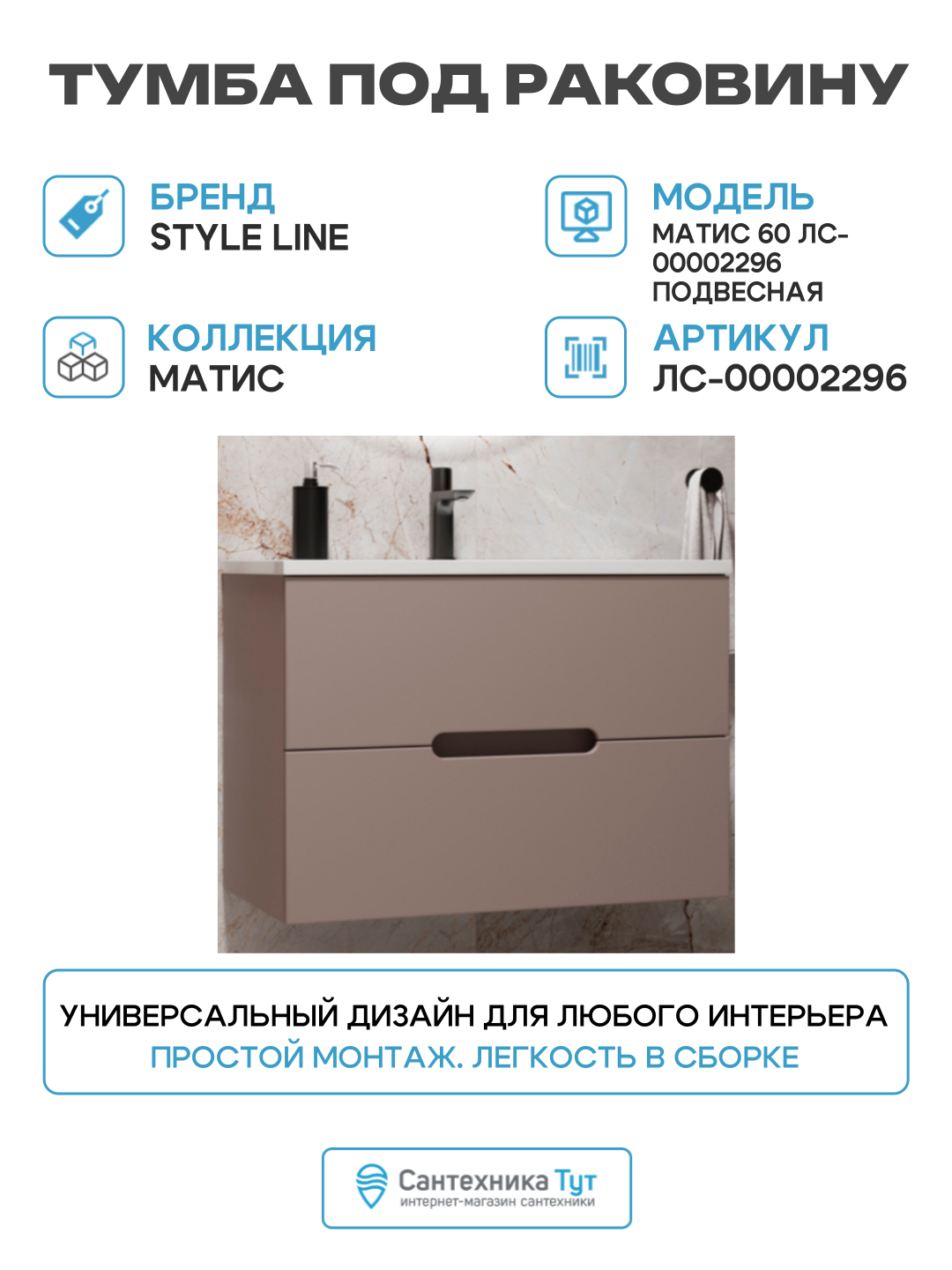 Сервис сравнения цен СкидкаГИД предлагает сравнить цены на товар «Тумба под раковину Style Line Матис 60 см ЛС-00002296 тауп темный»