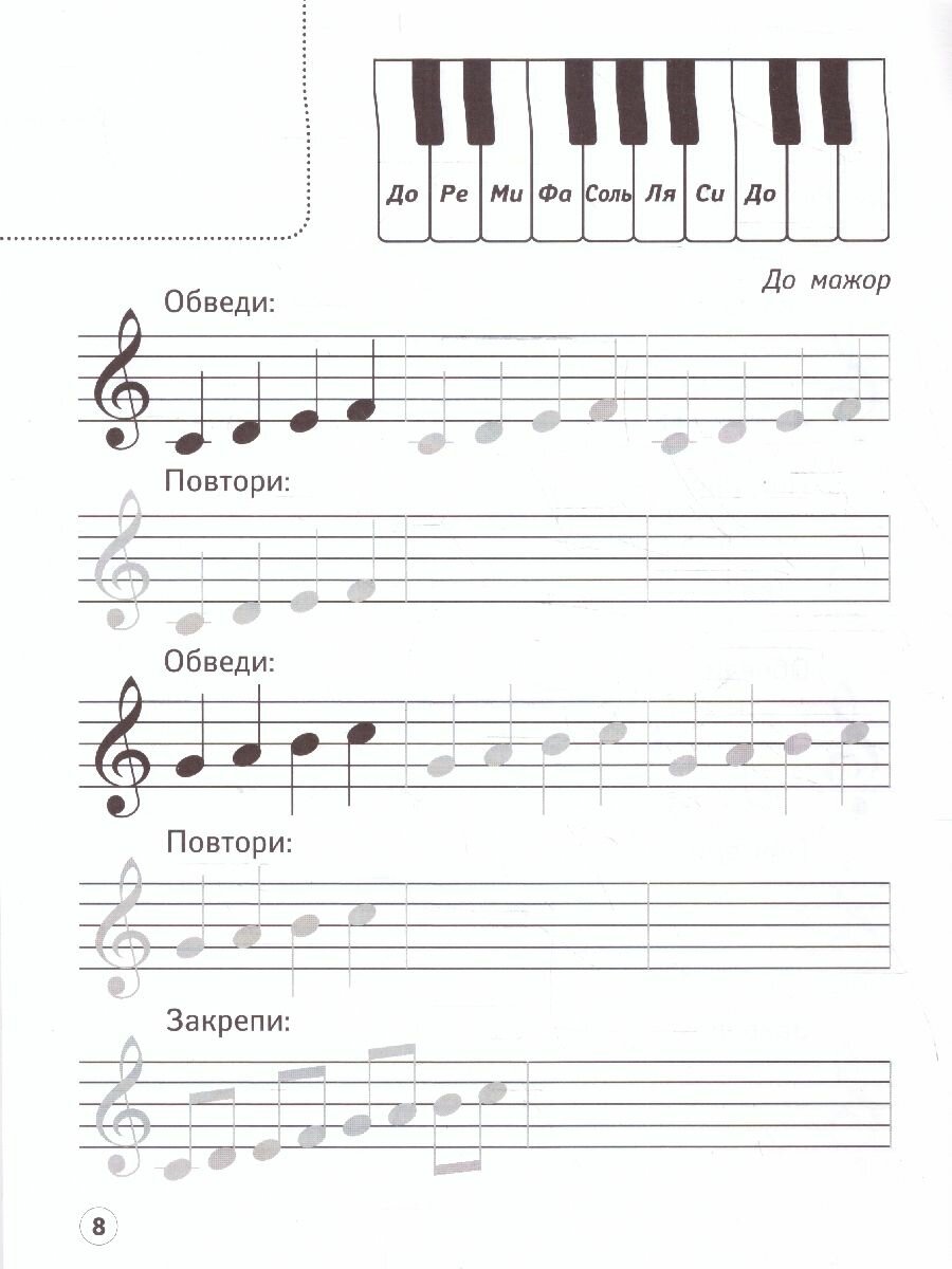Наши прописи включают нотный стан большего, чем обычно, размера, для удобства детей при обучении написанию нот, а также мотивирующие наклейки со зверюшками, поэтому процесс освоения нотной грамоты становится частью игры и проходит более увлекательно.