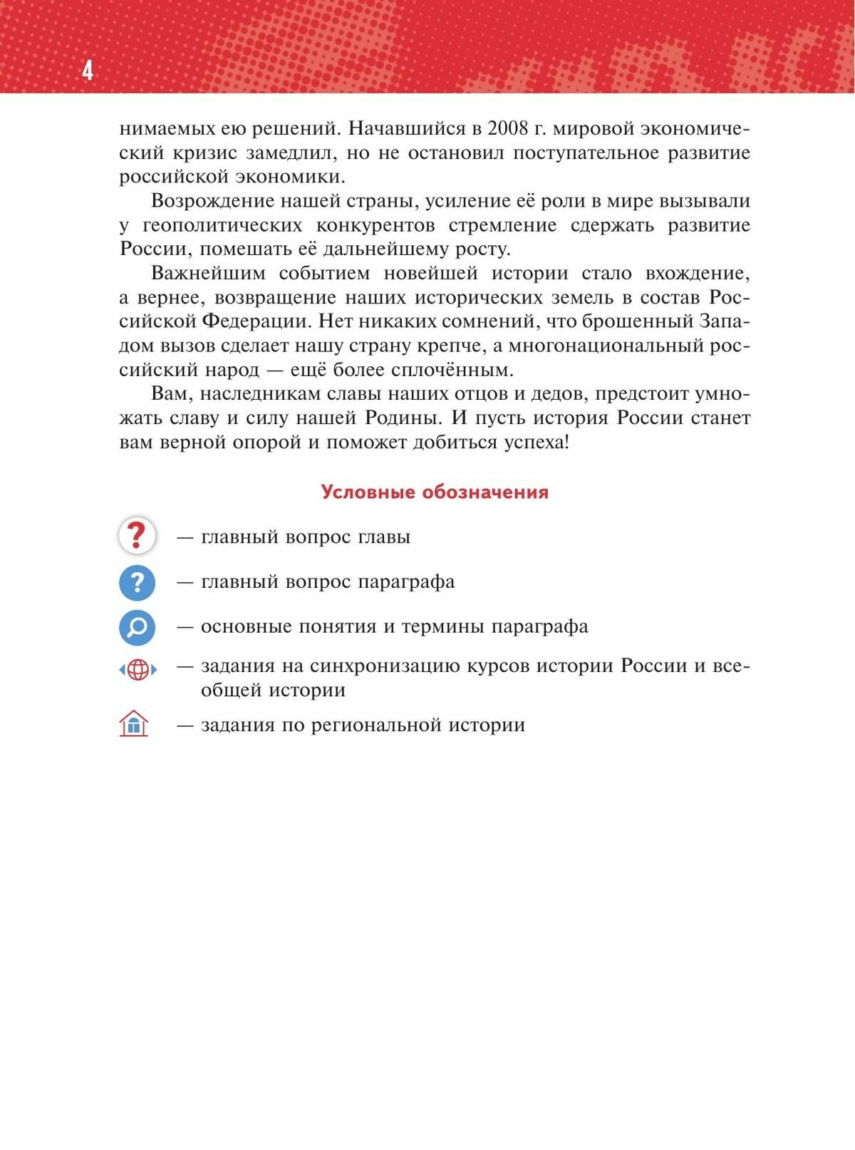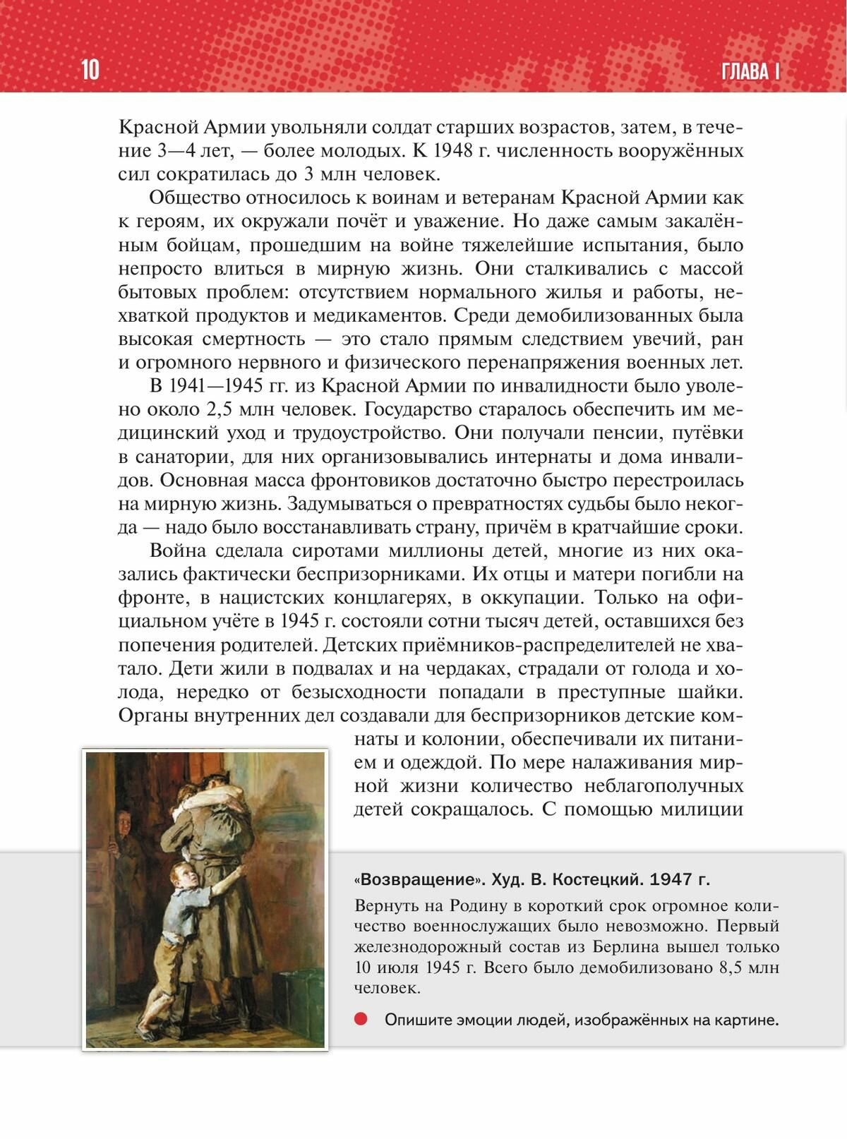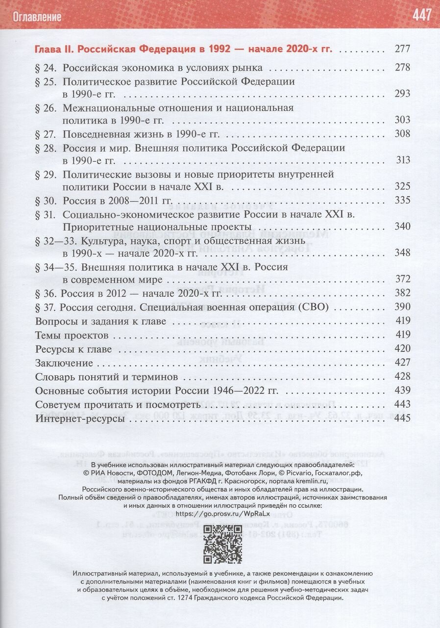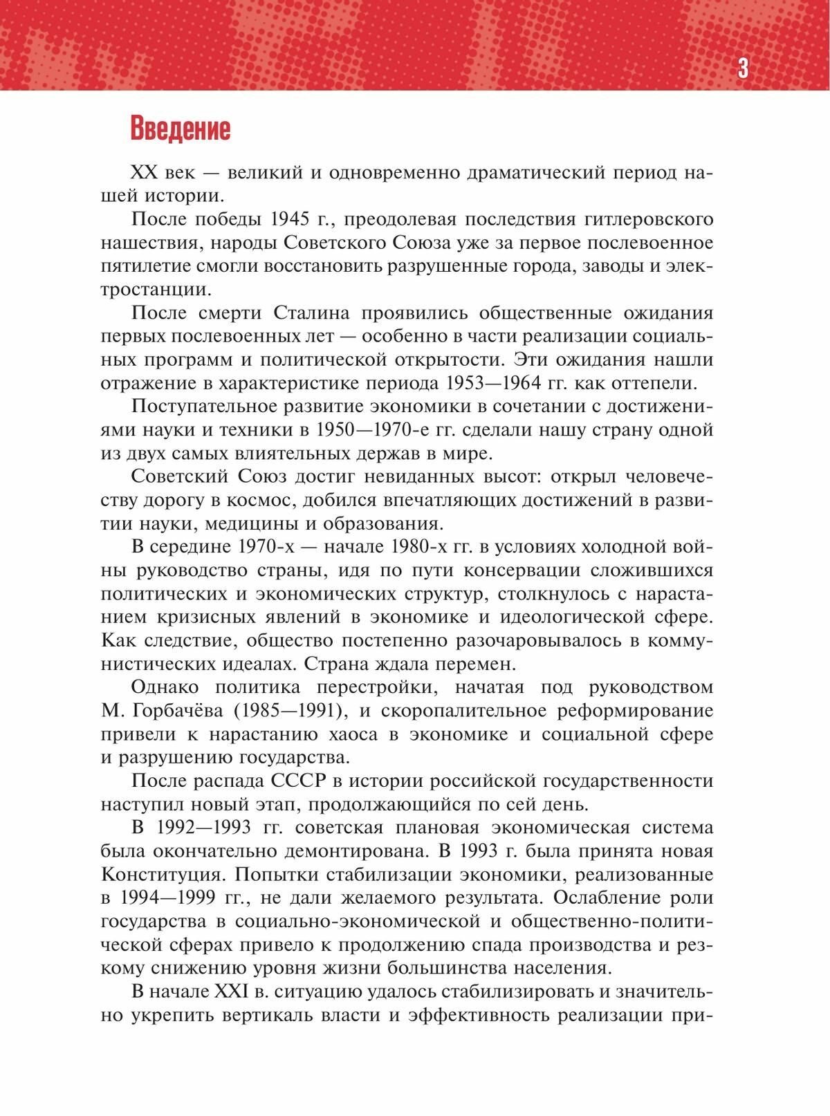 В учебнике освещены основные события истории России 1945 г. — начала 2020-х гг., большое значение уделено вопросам интеграции событий отечественной и зарубежной истории. Представленные в учебнике вопросы и задания нацелены на изучение региональной истории, подготовку к промежуточной и итоговой аттестации. Значительное место в учебнике занимают материалы по истории духовной жизни общества, культуры и повседневности. Главным результатом изучения курса должно стать формирование у учащихся патриотизма и российской гражданской идентичности.