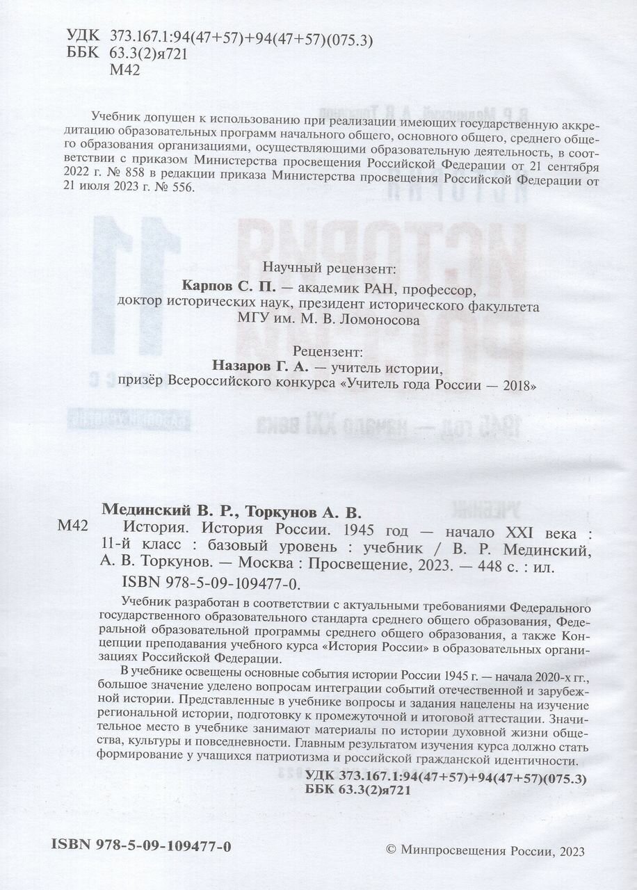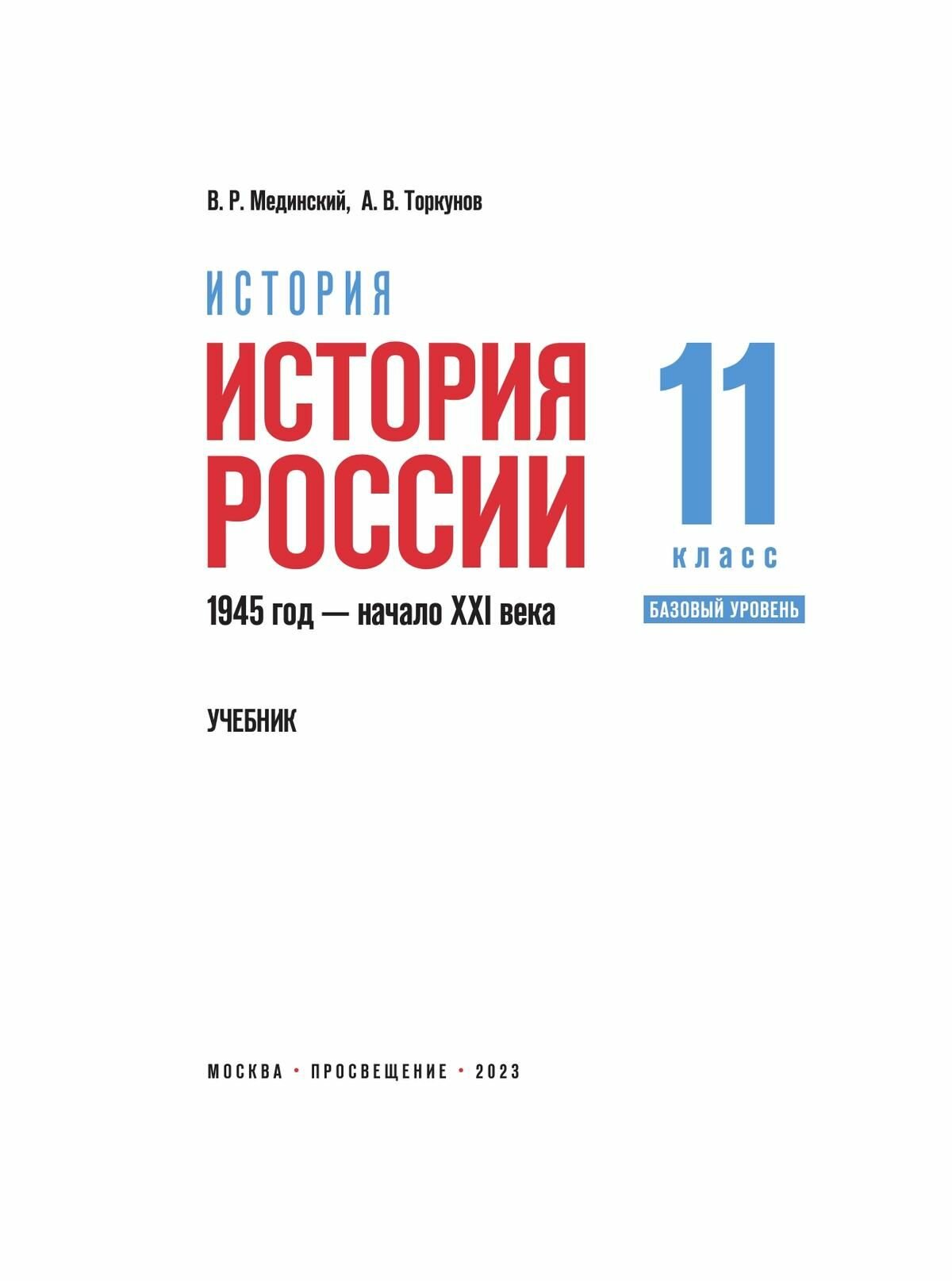 История России. 1945 год - начало XXI века. 11 класс. Базовый уровень. Учебник (Мединский Владимир Ростиславович, Торкунов Анатолий Васильевич); Просвещение, 2024
