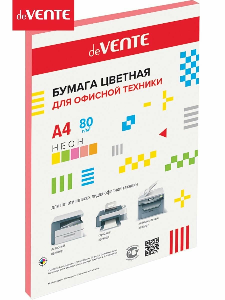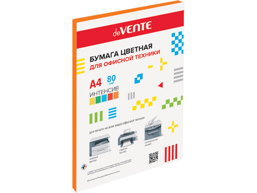 Бумага цветная для принтера интенсивно-оранжевая A4 50 листов deVENTE