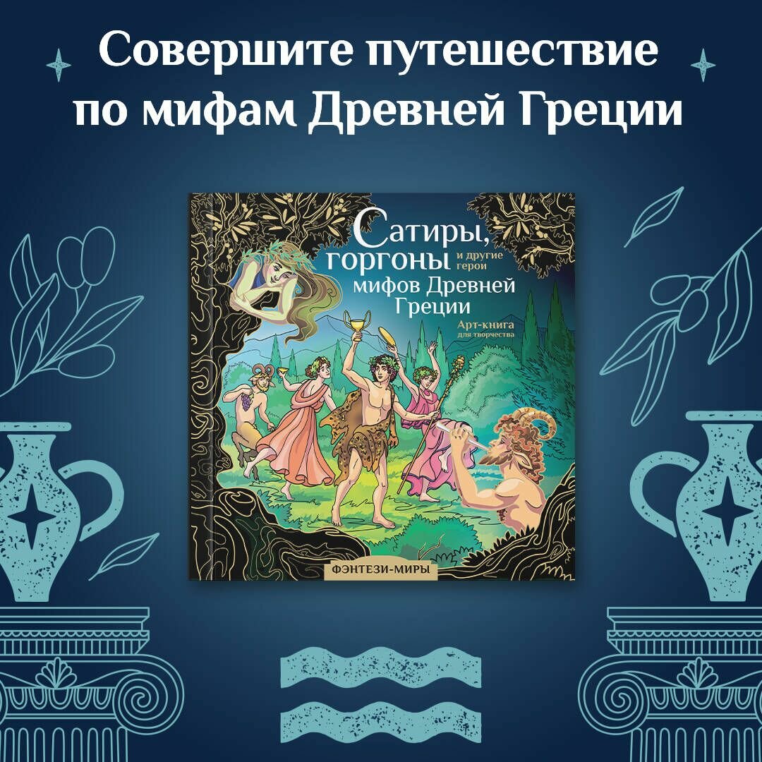 Обитатели Олимпа и мрачного подземного царства, величественные боги и отважные герои, музы и нимфы, Минотавр и Цербер – персонажи античной мифологии оживут на страницах арт-книги, созданной специально для любителей творчества. Станьте участниками величайших сражений, отправляйтесь на поиски золотого руна вместе с аргонавтами или оседлайте непокорного Пегаса. Раскрашивайте хрестоматийные сюжеты, используя карандаши, маркеры и даже краски. Сверхплотная бумага раскраски «Сатиры, горгоны и другие герои мифов Древней Греции» не боится воды, а увеличенный формат издания позволяет с головой погрузиться в арт-терапию и узнать много интересного из мира греческих мифов.