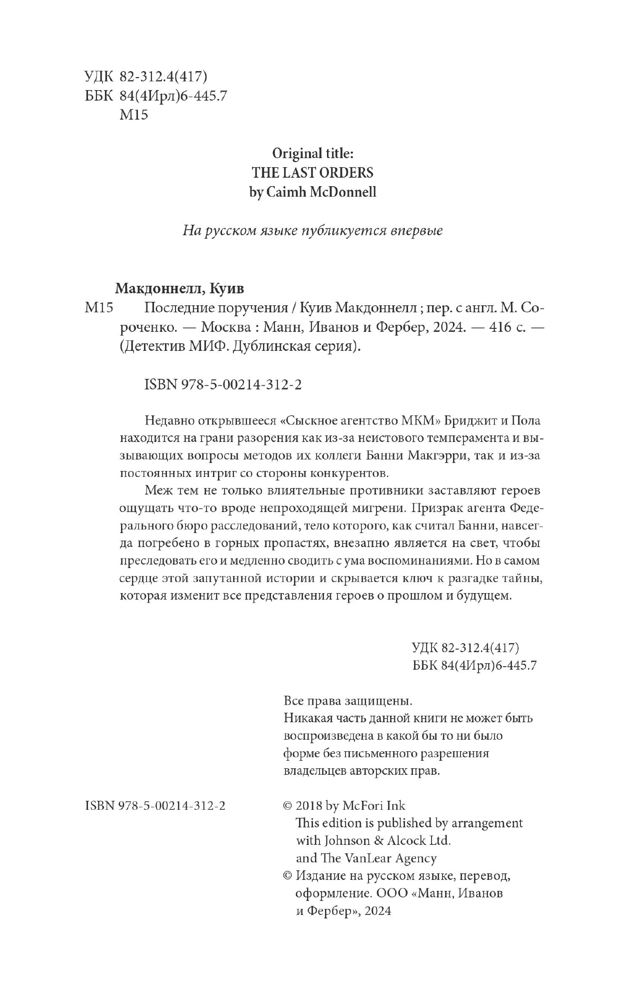 Книга: Последние поручения (Куив Макдоннелл, Максим Сороченко, переводчик); МИФ, 2023