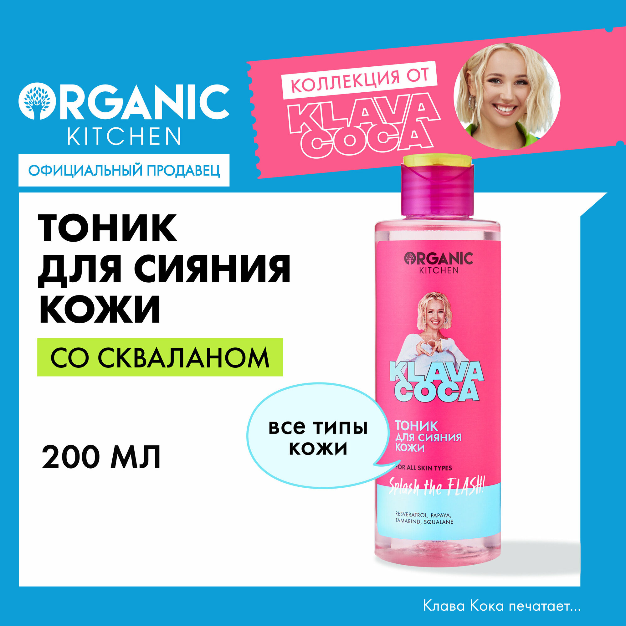 Тоник для сияния кожи Organic Kitchen Klava Coca Splash the Flash! 200мл ОРГАНИК ШОП РУС