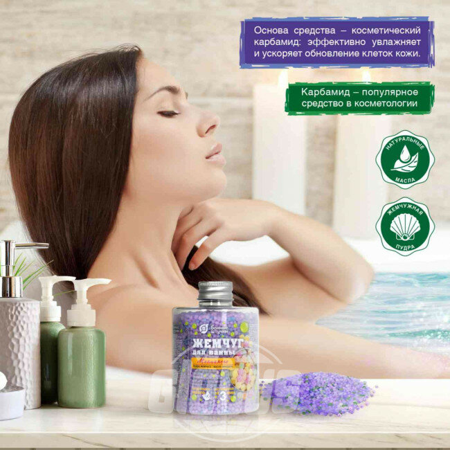 Жемчужные ванны - великолепный эффект после первого применения. Жемчуг содержит натуральные компоненты, основным из которых является карбамид - натуральный природный увлажнитель и проводник питательных веществ к клеткам дермы. Благодаря этому кожа становится напитанной, увлажнённой и сияющей.