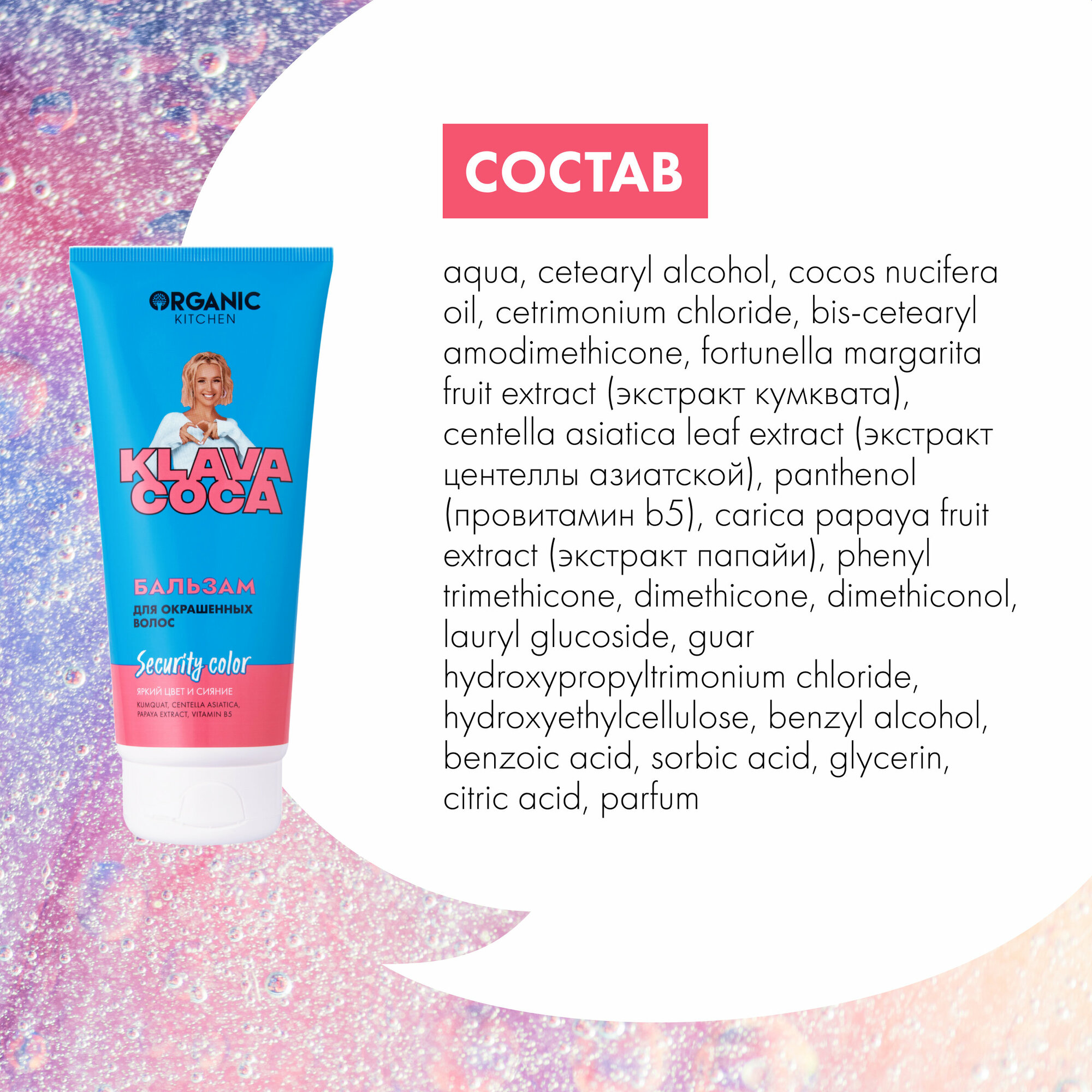 Бальзам для волос Organic Kitchen Klava Coca Security Color Яркий цвет и сияние для окрашенных волос 200мл ОРГАНИК ШОП РУС