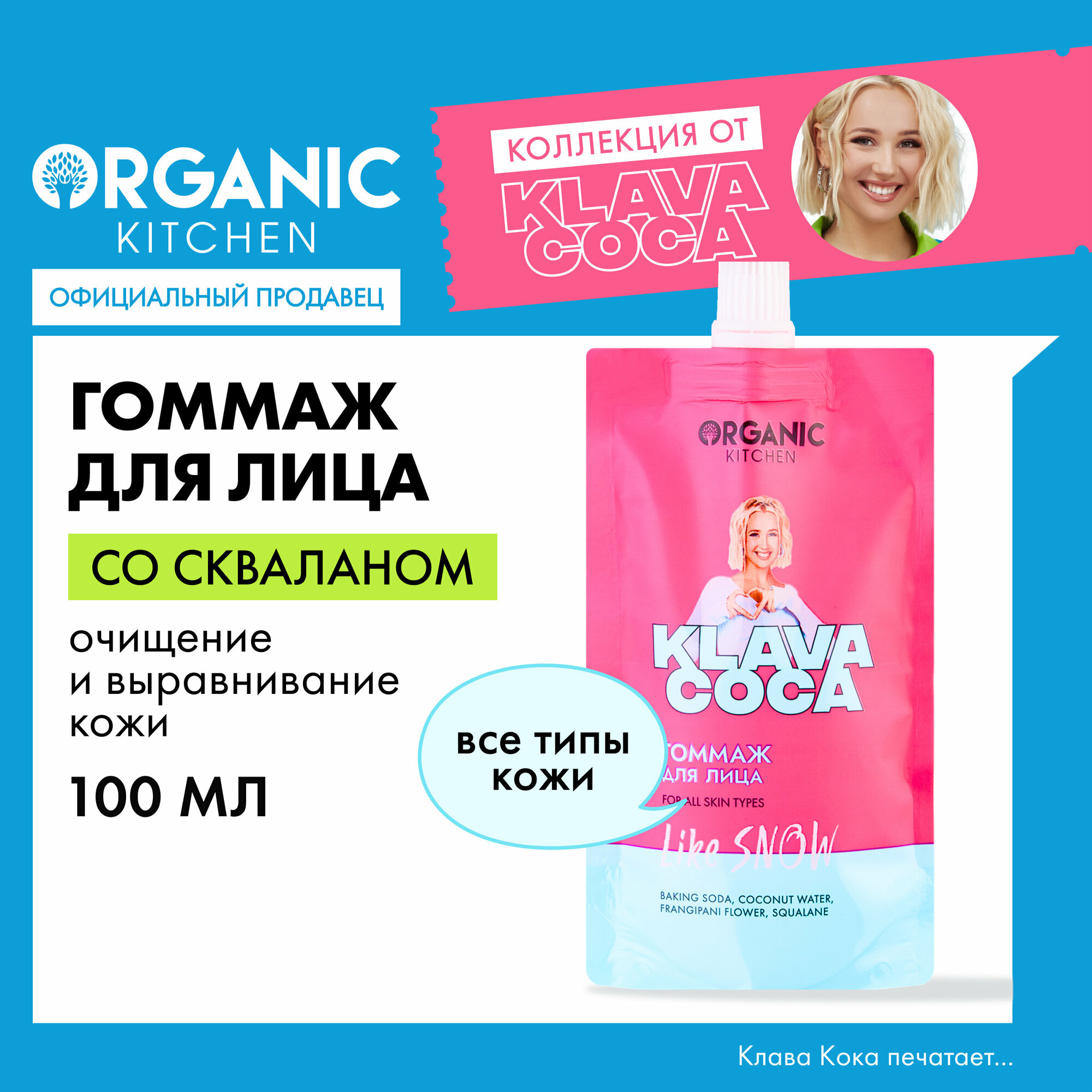 Гоммаж для лица Organic Kitchen Klava Coca Like snow 100мл ОРГАНИК ШОП РУС