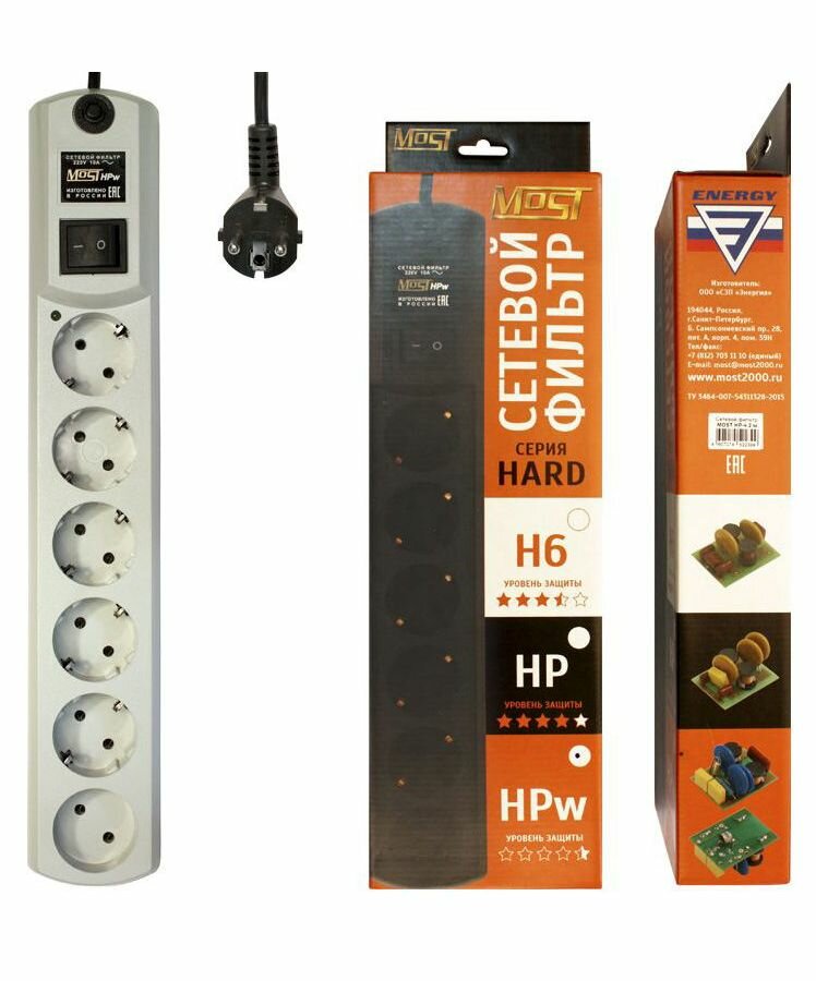Сетевой фильтр Most HPw 5м (6 розеток) белый Hard HPw, 5м