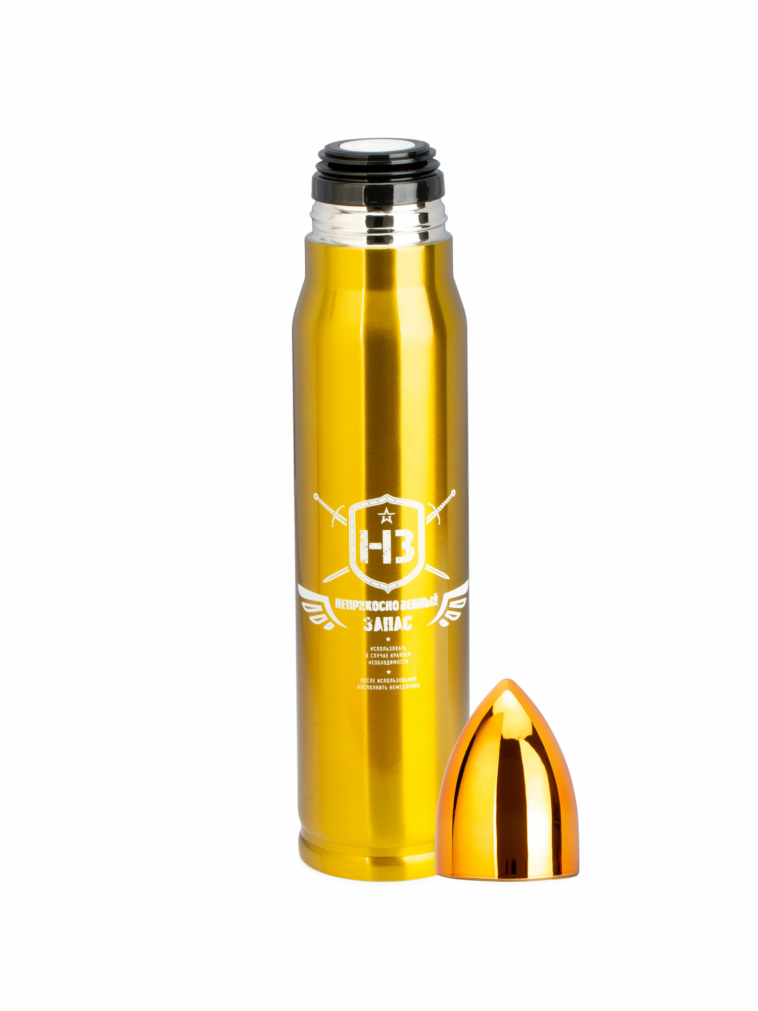 Термос подарочный Патрон предназначен для хранения горячих и холодных напитков. Снаружи и внутри термос изготовлен из высококачественной нержавеющей стали с вакуумной теплоизоляцией между колбой и корпусом. Термос обеспечен герметичной крышкой с теплоизоляционным материалом. Любители путешествий и активного отдыха оценят все преимущества термоса. Вес 361 гр. Материал сталь нержавеющая, пластмасса. Страна производства Китай. Высота, см 29. Длина, см 6.2. Ширина, см 6.2. Внимание! Товар представлен в нескольких цветах, без возможности выбора. Цена указана за 1 шт.