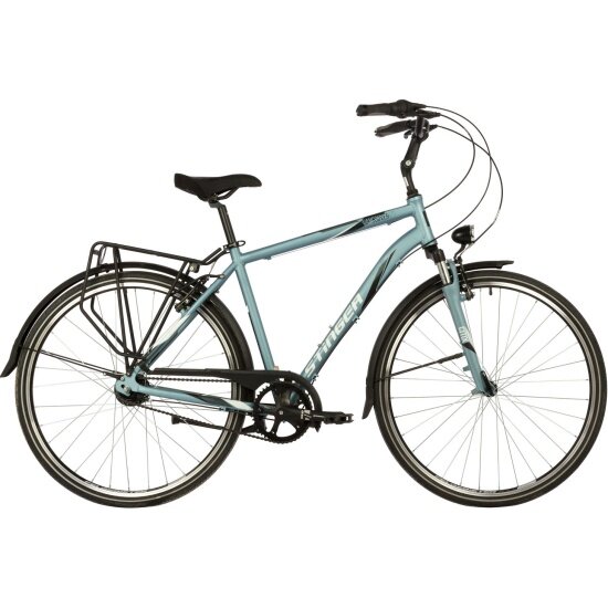 Дорожный велосипед класса туринг с оборудованием планетарного типа Shimano, 7 скоростей. Технические особенности: алюминиевая рама 6061, амортизированная вилка STG Citix, двойные алюминиевые обода Felgebeiter VB18, надежные ободные тормоза STG V-brake, длинные крылья, багажник, система освещения, регулируемый вынос, подножка. Подходит для туристического и прогулочного катания по шоссе и ровным проселочным дорогам. Диаметр колес - 28 дюймов. Вес - 15,8 кг.