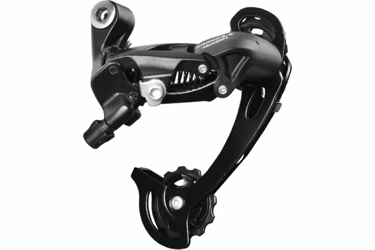 Качественный задний переключатель от тайваньского бренда Microshift совместим с трансмиссиями на 8/9 передач. Фиксируется на петухе, специальном наконечнике рамы. Конструкция выполнена из различных материалов (сталь/алюминий/пластик) и весит всего 317 грамм. Переключатель оснащен длинной лапкой. Емкость трансмиссии: 45T. Максимальная/минимальная звезда: 36T/11T.