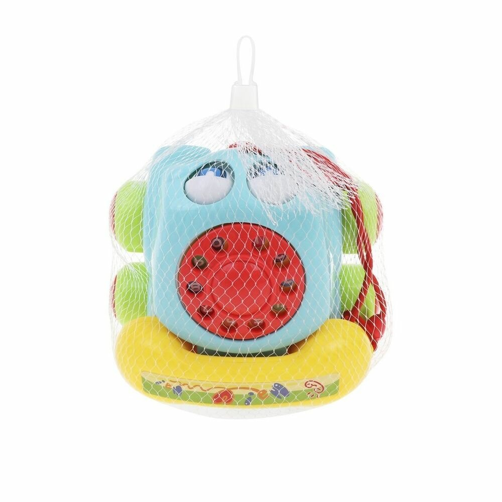 Каталка-игрушка Наша Игрушка Яркая и оригинальная каталка на верёвочке «Телефончик» создана специально для самых маленьких! Игрушка способствует физическому развитию малыша. Во время движения телефончик воспроизводит звук пищалки, открывает и закрывает глазки, высовывает язычок. На нем можно набирать номер, поворачивая звонкий циферблат, и снимать трубку. Играя, ребёнок будет развивать координацию движений, мелкую моторику рук и цветовосприятие. Размер игрушки-каталки (ДхШxВ) составляет 18,5х20x12,5 см. Изготовлено из полимерных материалов. Рекомендованный возраст: 1 год +