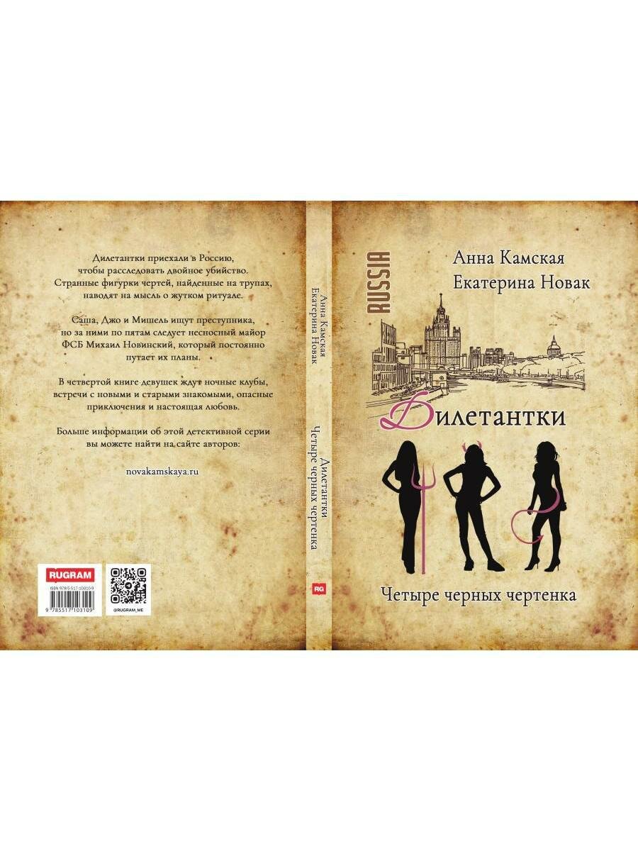 Дилетантки промышляют в России. Мишель и Саша живут в Москве, к ним прилетает Джо, ведь ее друг Серж попросил девочек помочь. Расследовать двойное убийство. Около трупов найдены фигурки чертей, это наводит на мысли о ритуале. А жертв объединяет одно, они связаны с клубом "Мракобесы". Подруги готовы с головой окунуться в расследование, а тут майор ФСБ Михаил Новинский попадается у них на пути.