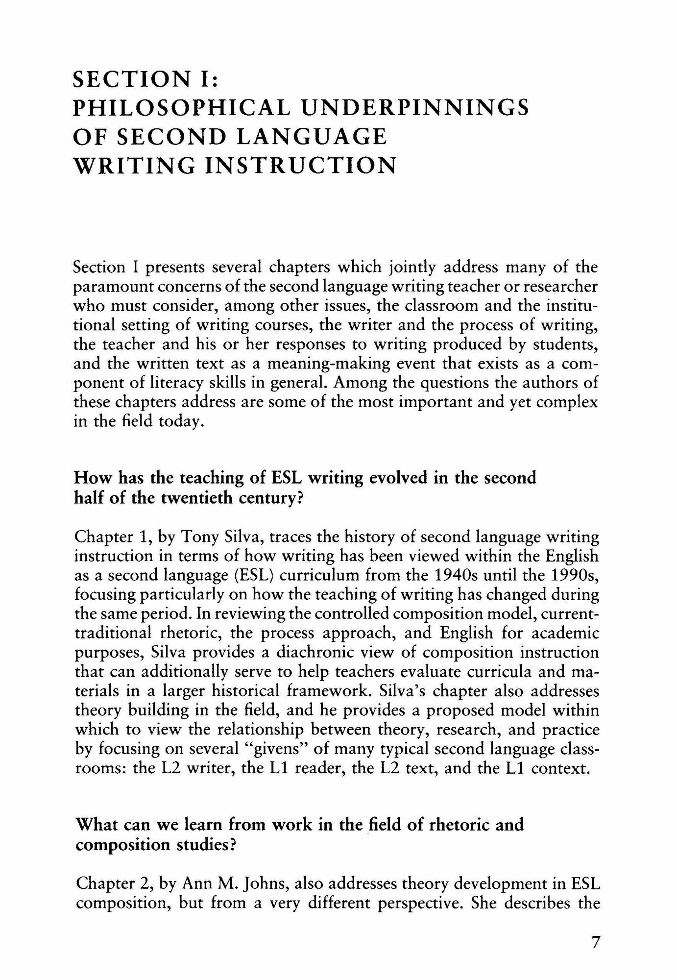 It systematically sets out the key issues in second language writing instruction to offer both pre-service and in-service teachers a guide to writing instruction grounded in current theory and research. The book includes chapters on approaches to teaching writing, needs analysis, syllabus design, lesson planning, task design, materials development, and feedback and assessment, and on using technology in writing classes and in conducting research. There are review exercises, reflection questions, and copious examples to make the book extremely useful to prospective and practicing teachers alike.