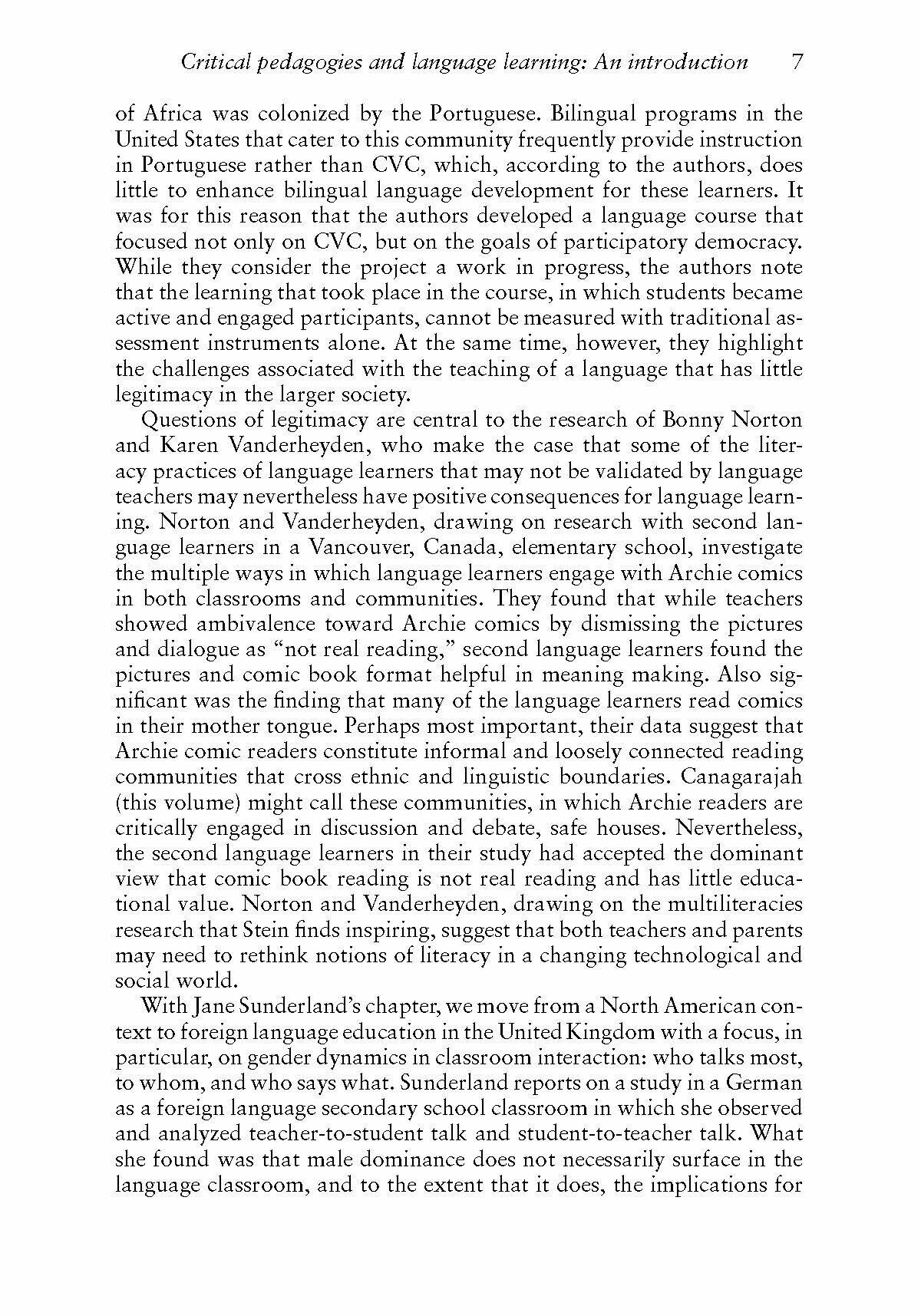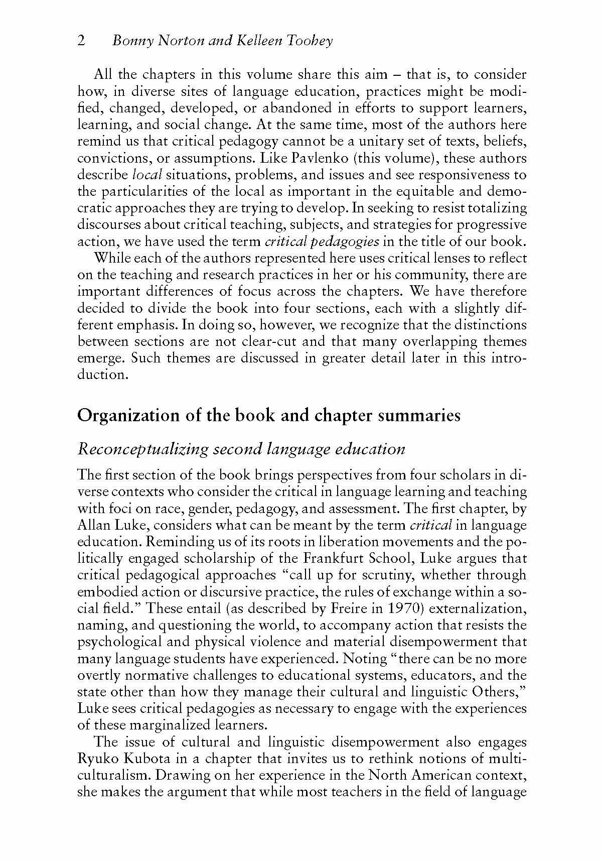 Critical Pedagogies and Language Learning; Cambridge, 2009