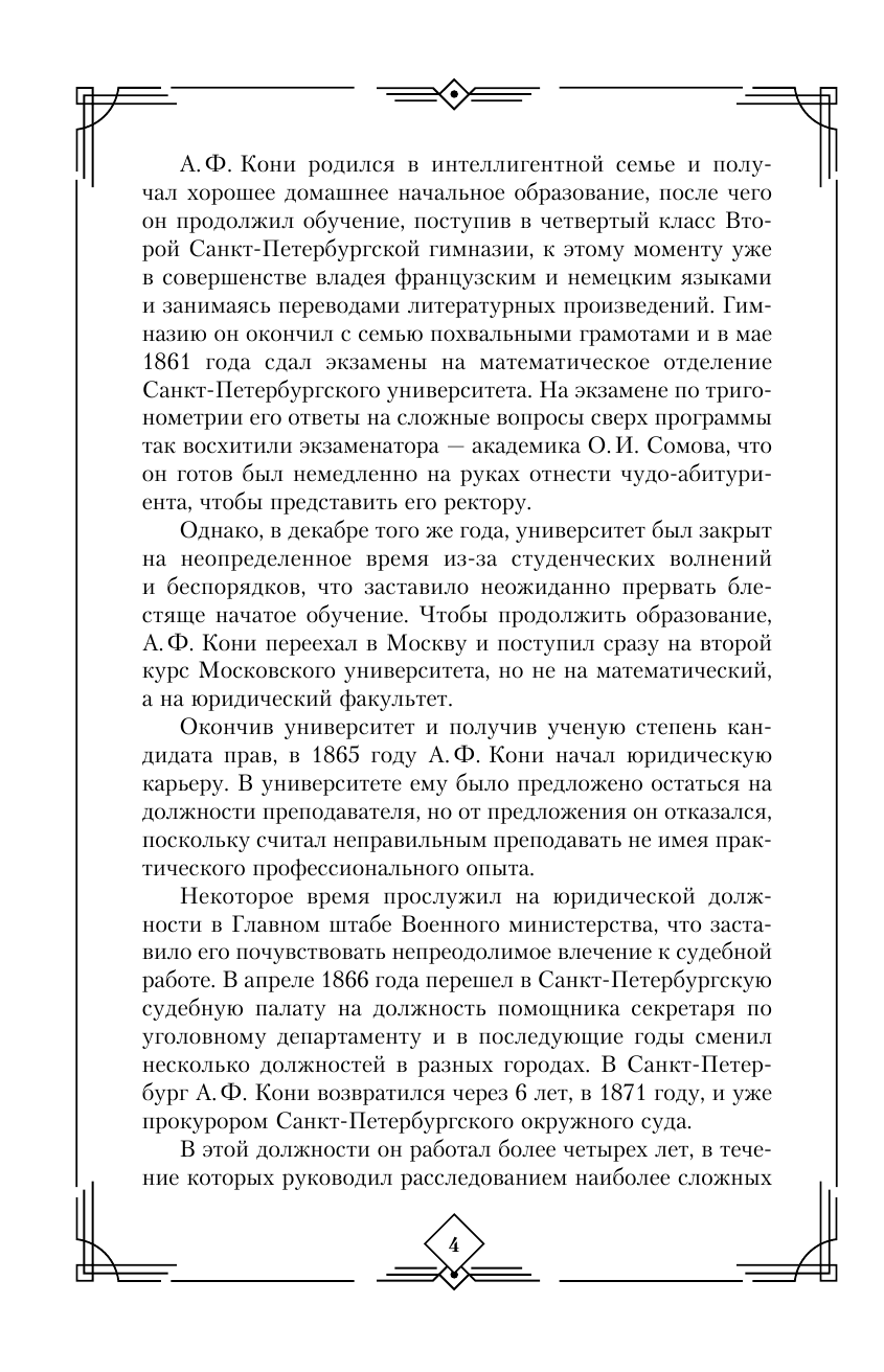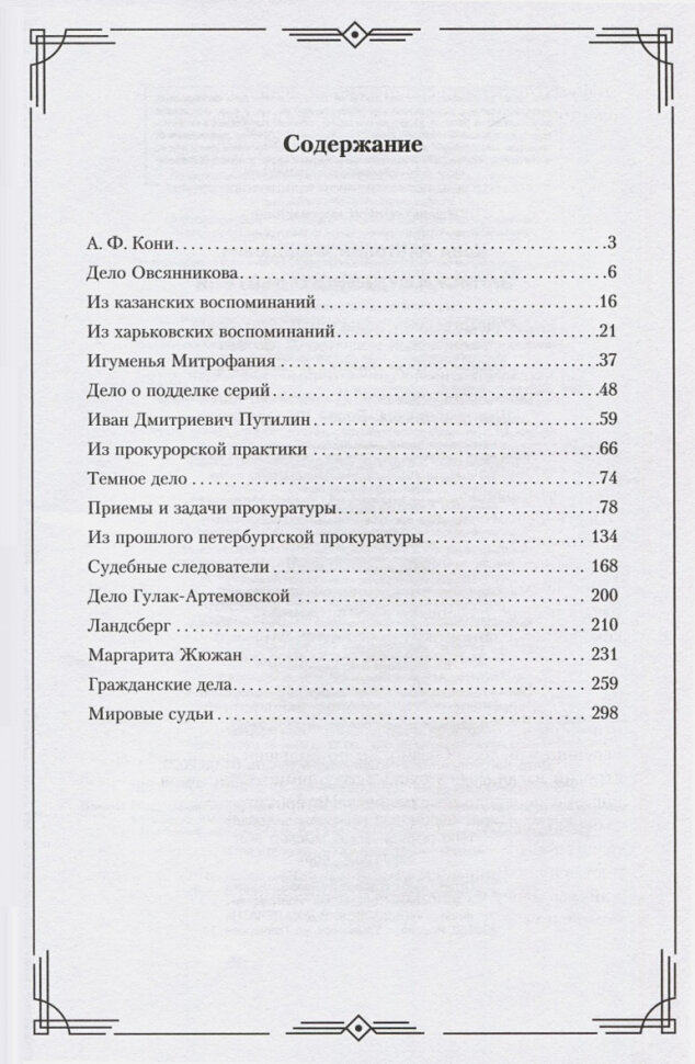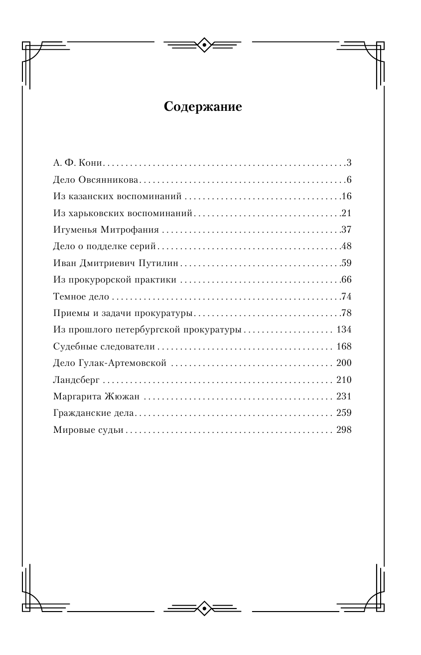 В книгу вошли такие известные дела, как «Игуменья Митрофания», «Из казанских воспоминаний», «Дело Овсянникова», «Темное дело». Также в сборнике представлен очерк «Князь А.И. Урусов и Ф.Н. Плевако», рассказывающий о выдающихся судебных ораторах, которые без предварительной подготовки вышли на один уровень с лучшими представителями западноевропейской адвокатуры.