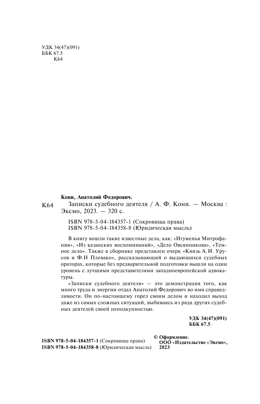 Записки судебного деятеля (Черная) (Кони Анатолий Федорович); ООО "Издательство "Эксмо", 2023