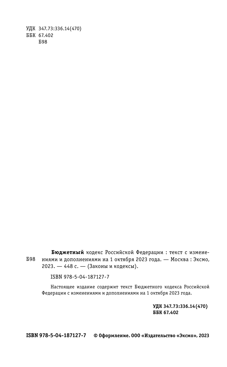 Бюджетный кодекс РФ по сост. на 01.10.23 / БК РФ (коллектив авторов); Эксмо-Пресс, 2023
