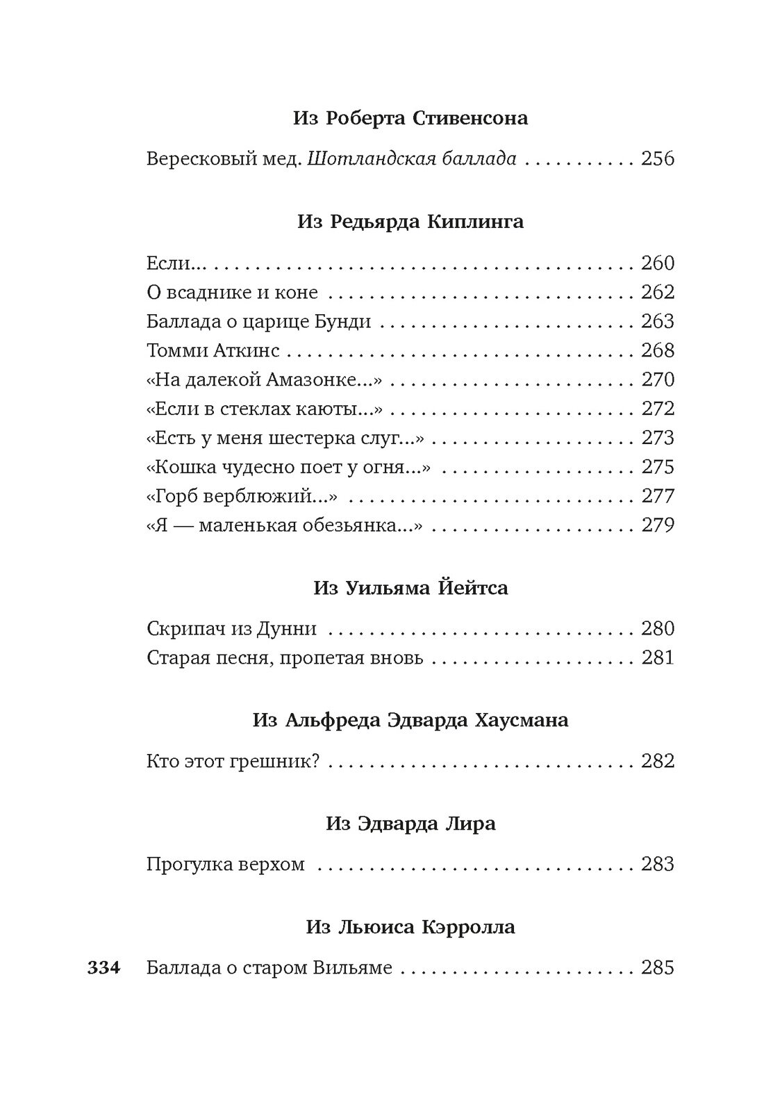| Автор(ы) | Эдвард Лир, Джон Мильтон, Уильям Батлер Йейтс, Джордж Ноэл Гордон Байрон, Альфред Теннисон, Роберт Бёрнс, Джон Китс, Уильям Блейк, Уильям Вордсворт, Редьярд Джозеф Киплинг, Льюис Кэрролл, Роберт Льюис Стивенсон, Перси Биши Шелли, Роберт Браунинг, Альфред Эдвард Хаусман |