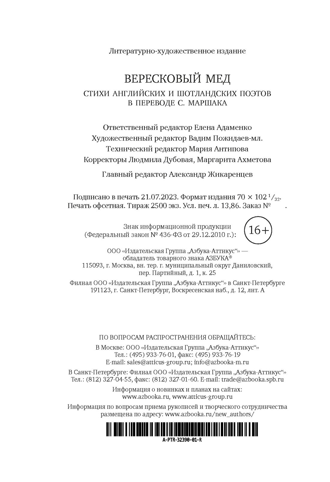 Вересковый мед. Стихи английских и шотландских поэтов в переводе С. Маршака (Эдвард Лир, Джон Мильтон, Уильям Батлер Йейтс, Джордж Ноэл Гордон Байрон, Альфред Теннисон, Роберт Бёрнс, Джон Китс, Уильям Блейк, Уильям Вордсворт, Редьярд Джозеф Киплинг, Льюис Кэрролл, Роберт Льюис Стивенсон, Перси Биши Шелли, Роберт Браунинг, Альфред Эдвард Хаусман); Азбука, 2026