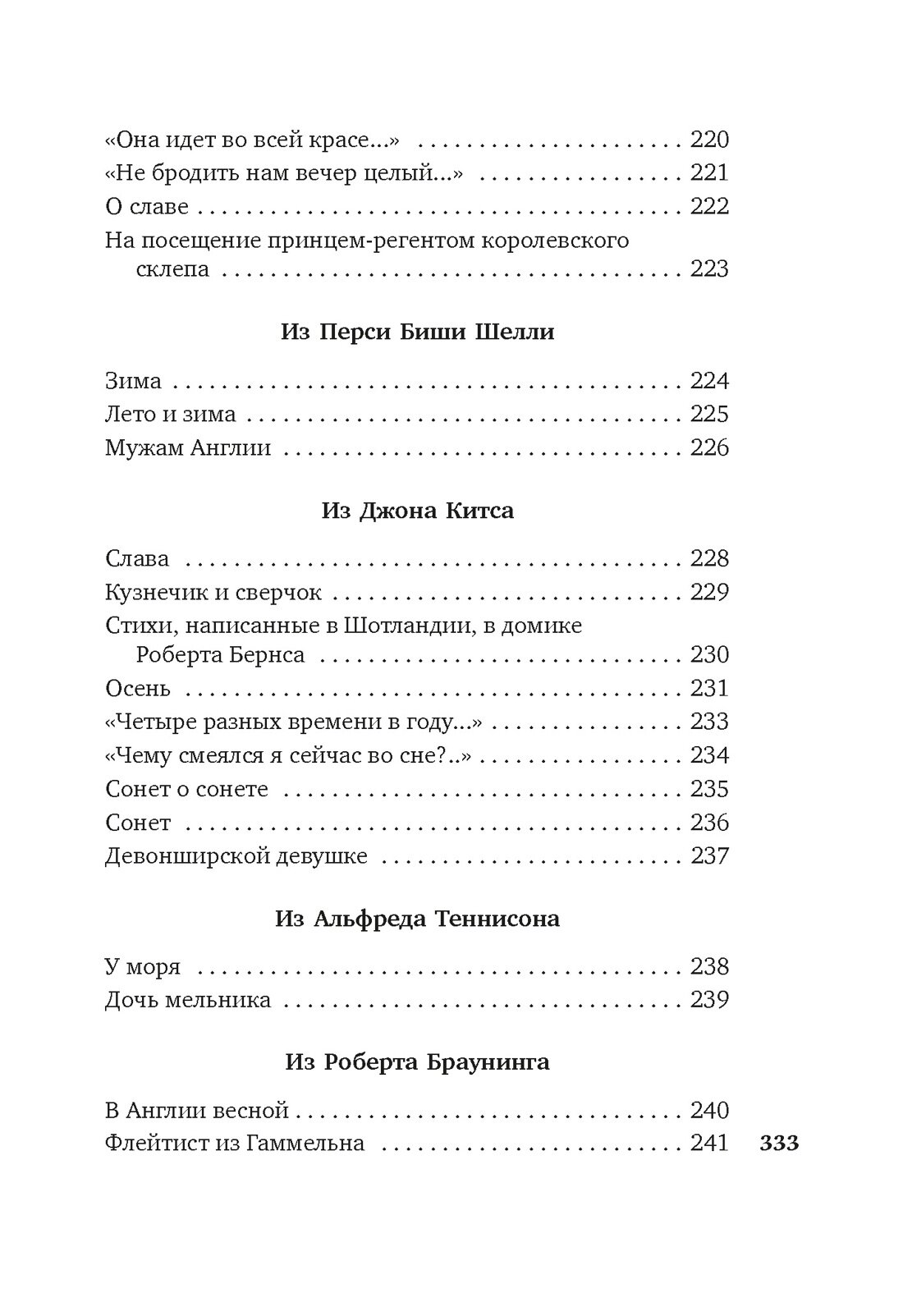 | Автор | Джон Мильтон, Джордж Гордон Байрон, Роберт Льюис Стивенсон, Редьярд Киплинг, Льюис Кэрролл, Эдвард Лир, Уильям Батлер Йейтс, Уильям Блейк, Джон Китс, Роберт Бернс, Альфред Теннисон, Уильям Вордсворт, Перси Биши Шелли, Роберт Браунинг, Альфред Эдвард Хаусман |