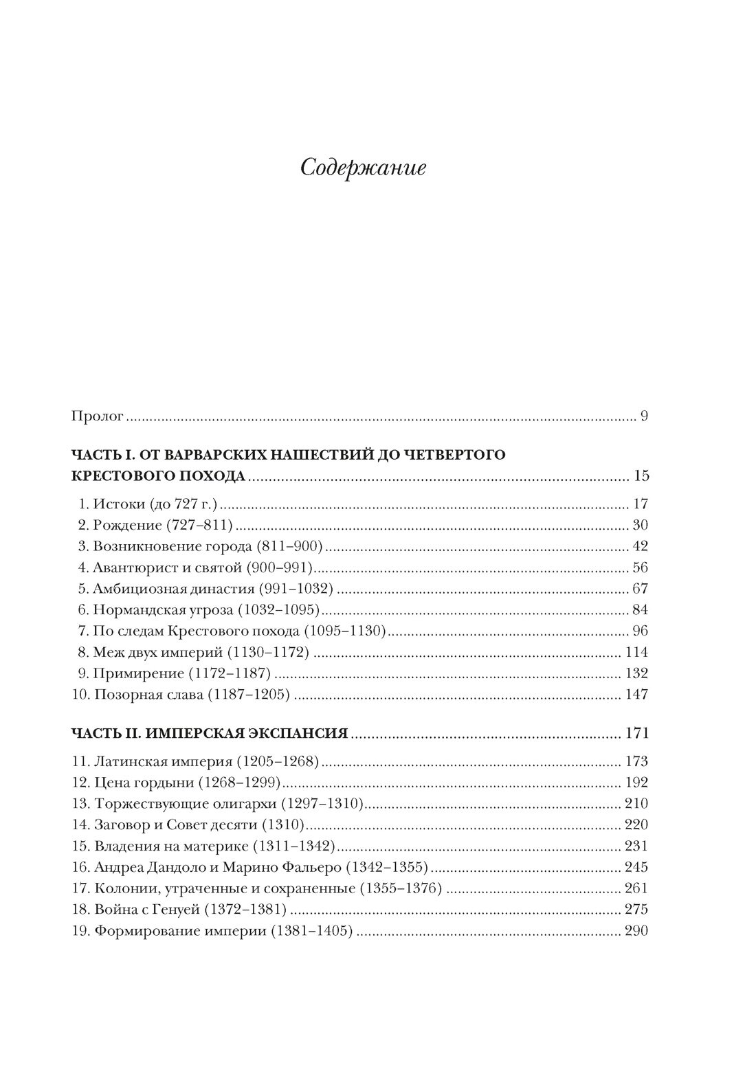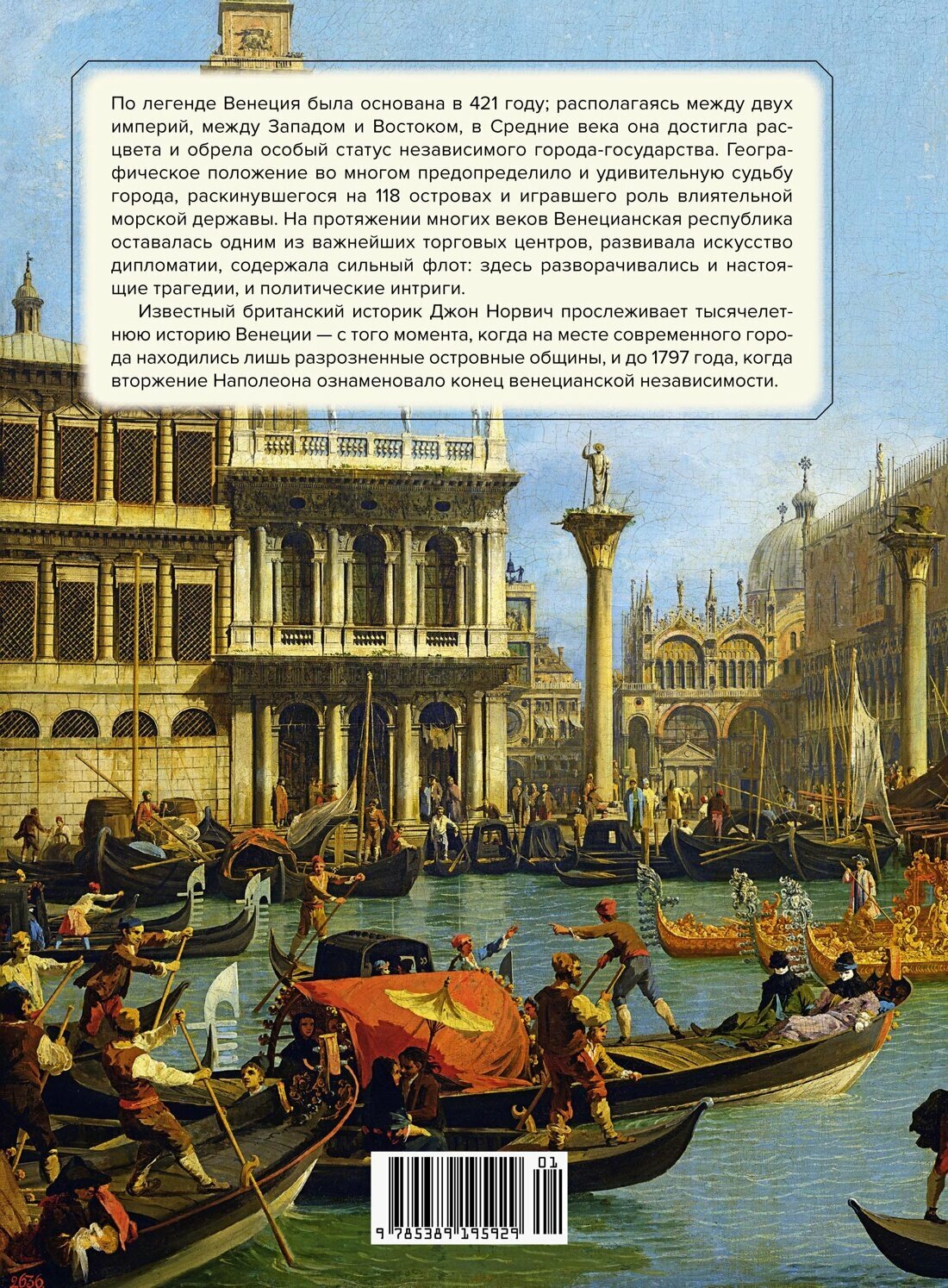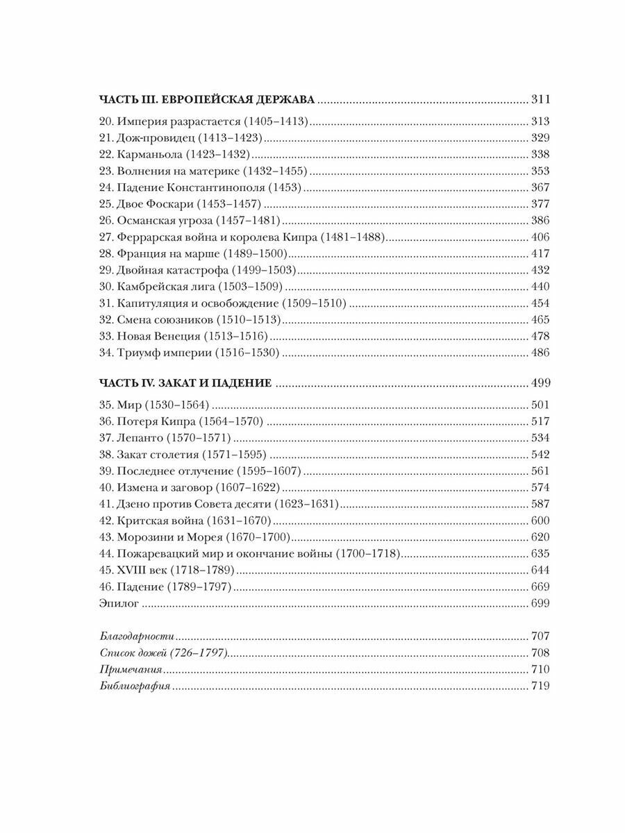 В книге подробно освещается история Венеции начиная с основания города в V веке и обретения уникального статуса одного из самых могущественных городов-государств в мире, сохранявшегося за ним на протяжении более тысячи лет, до падения Венецианской республики от рук Наполеона в 1797 году. Издание снабжено вкладками с великолепными цветными и черно-белыми иллюстрациями.