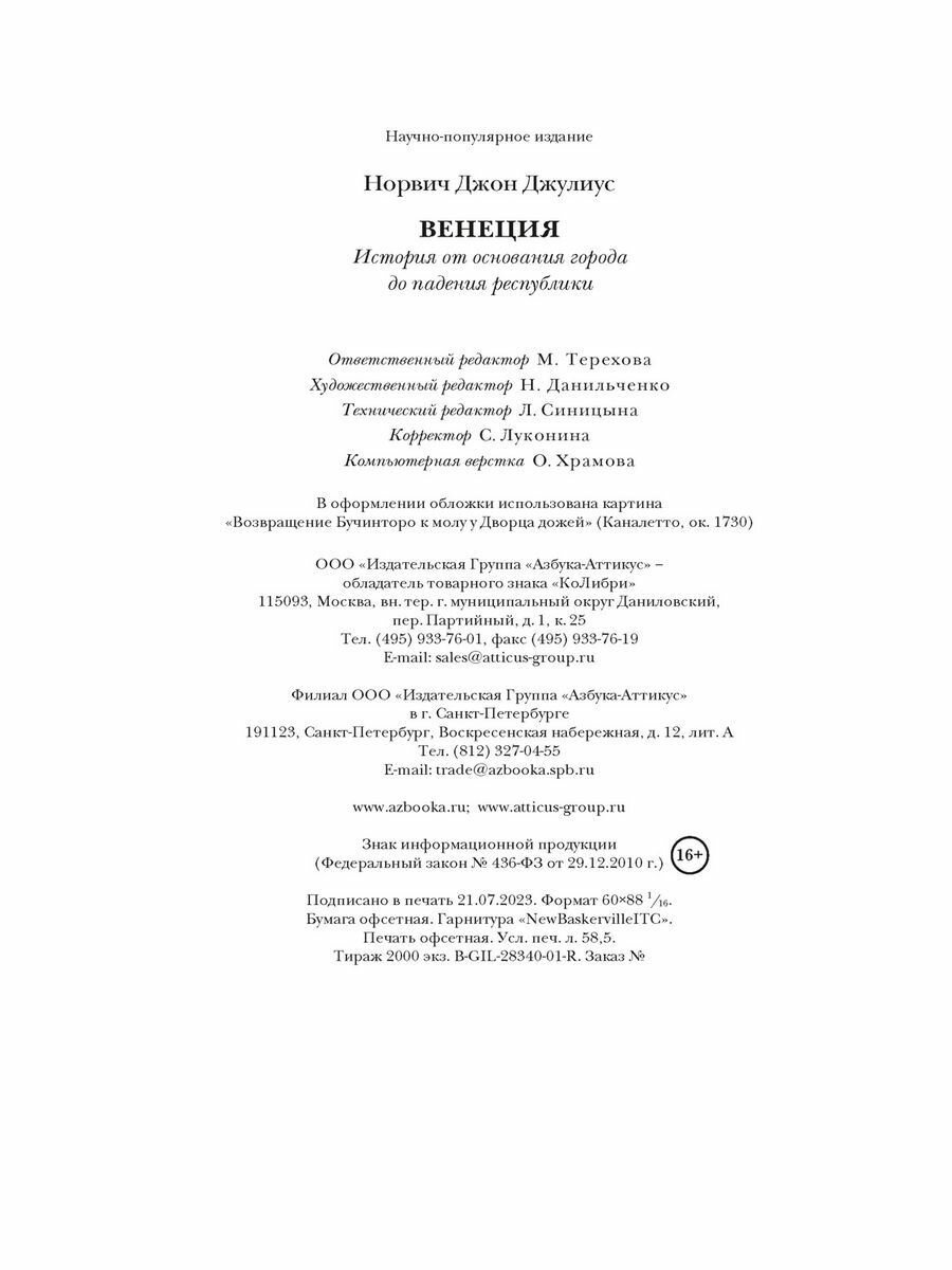 Венеция. История от основания города до падения республики (Норвич Джон Джулиус); КоЛибри, 2023