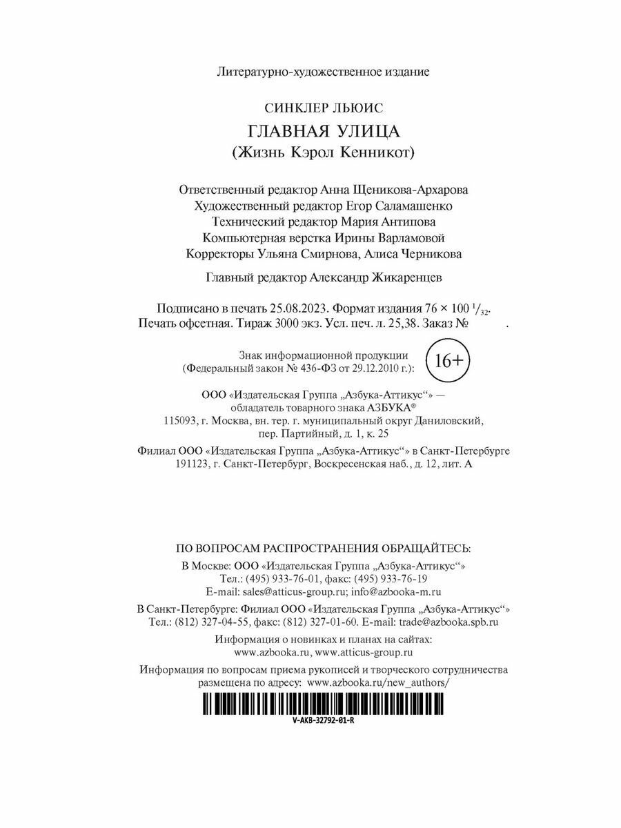 Книга: Главная улица (Синклер Льюис); Азбука, 2023