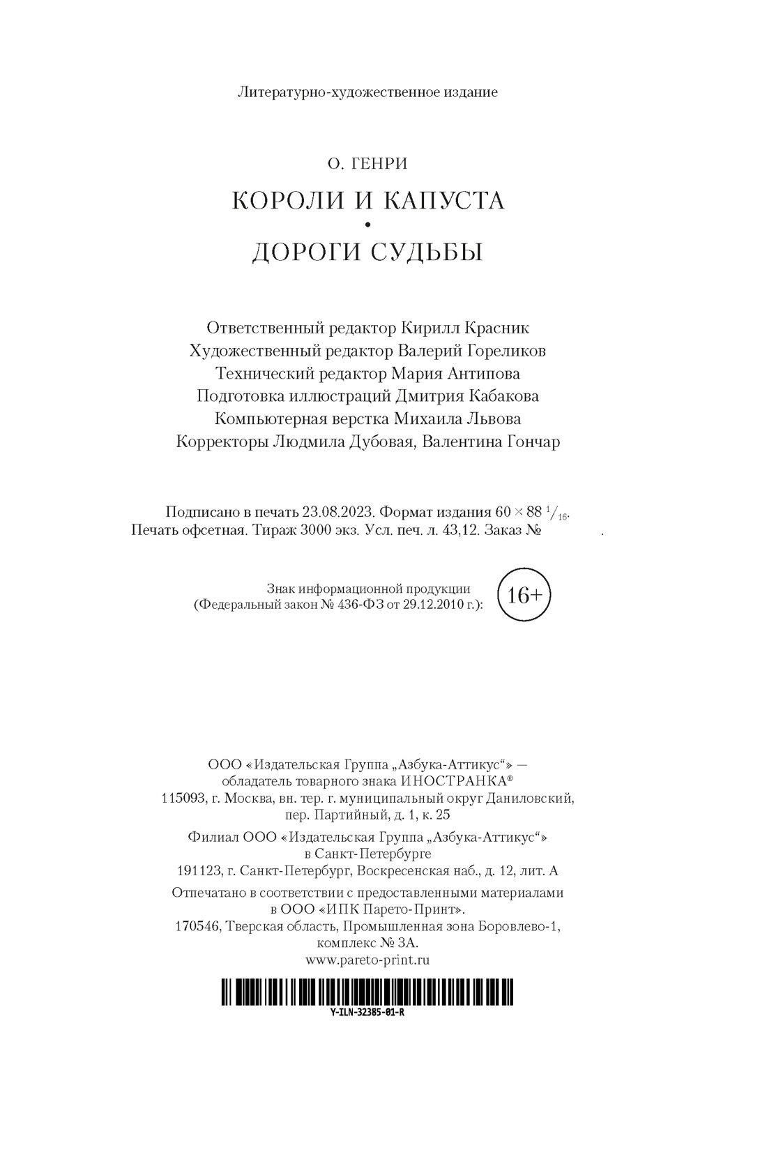 Короли и капуста. Дороги судьбы (О. Генри); Иностранка, 2024