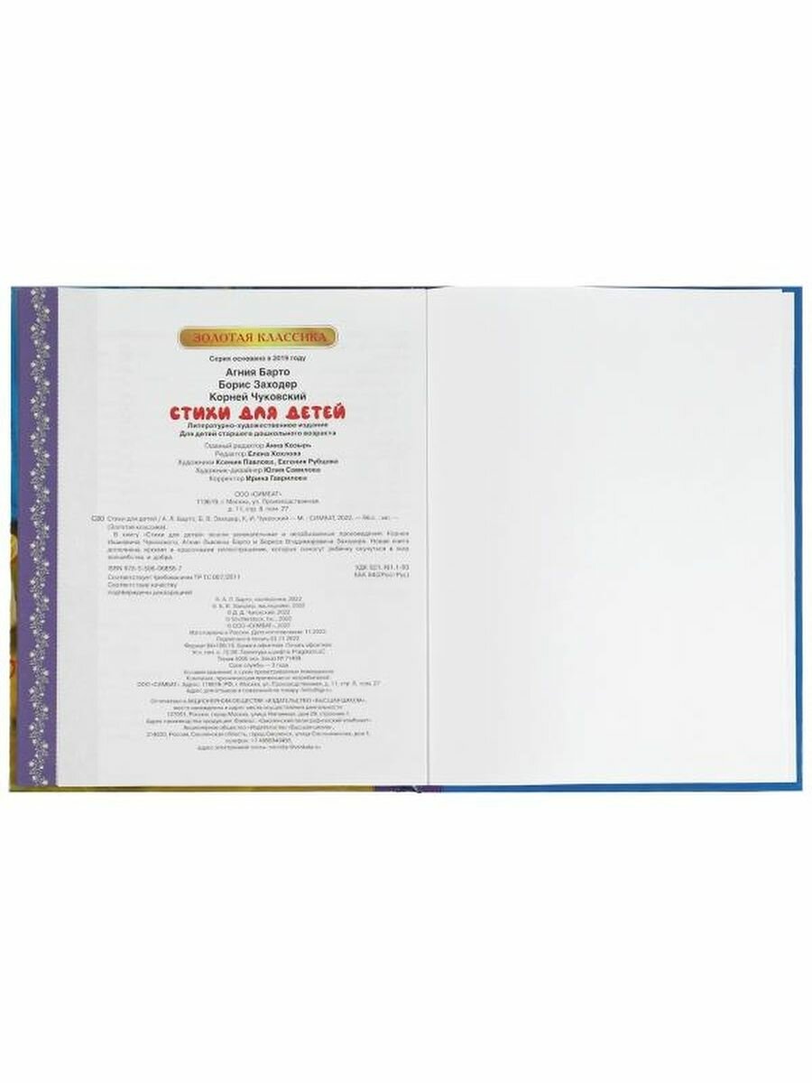 Сервис сравнения цен СкидкаГИД предлагает сравнить цены на товар «Книга: Стихи для детей (Агния Барто, Корней Чуковский, Борис Заходер); Умка, 2022»