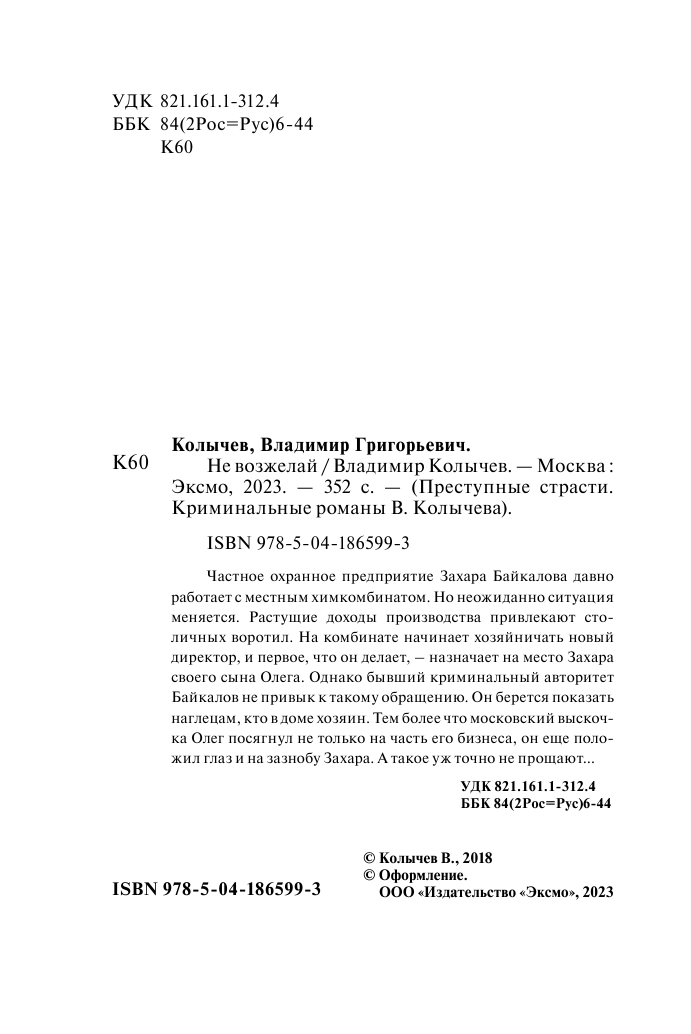 Книга: Не возжелай (Владимир Колычев); Эксмо, Редакция 1, 2023