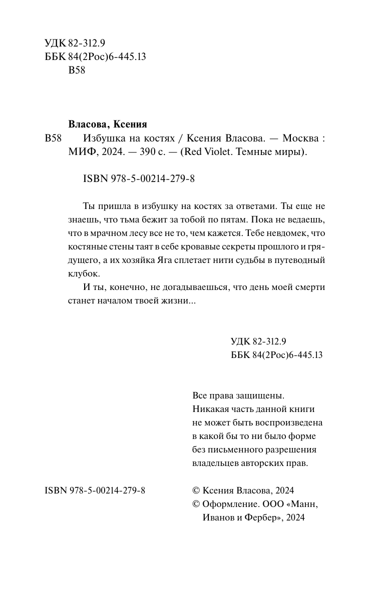 Книга: Избушка на костях (Ксения Игоревна Власова); Манн, Иванов и Фербер, 2025