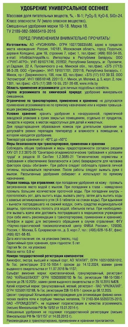 После окончания срока годности удобрение не теряет агрономической ценности.