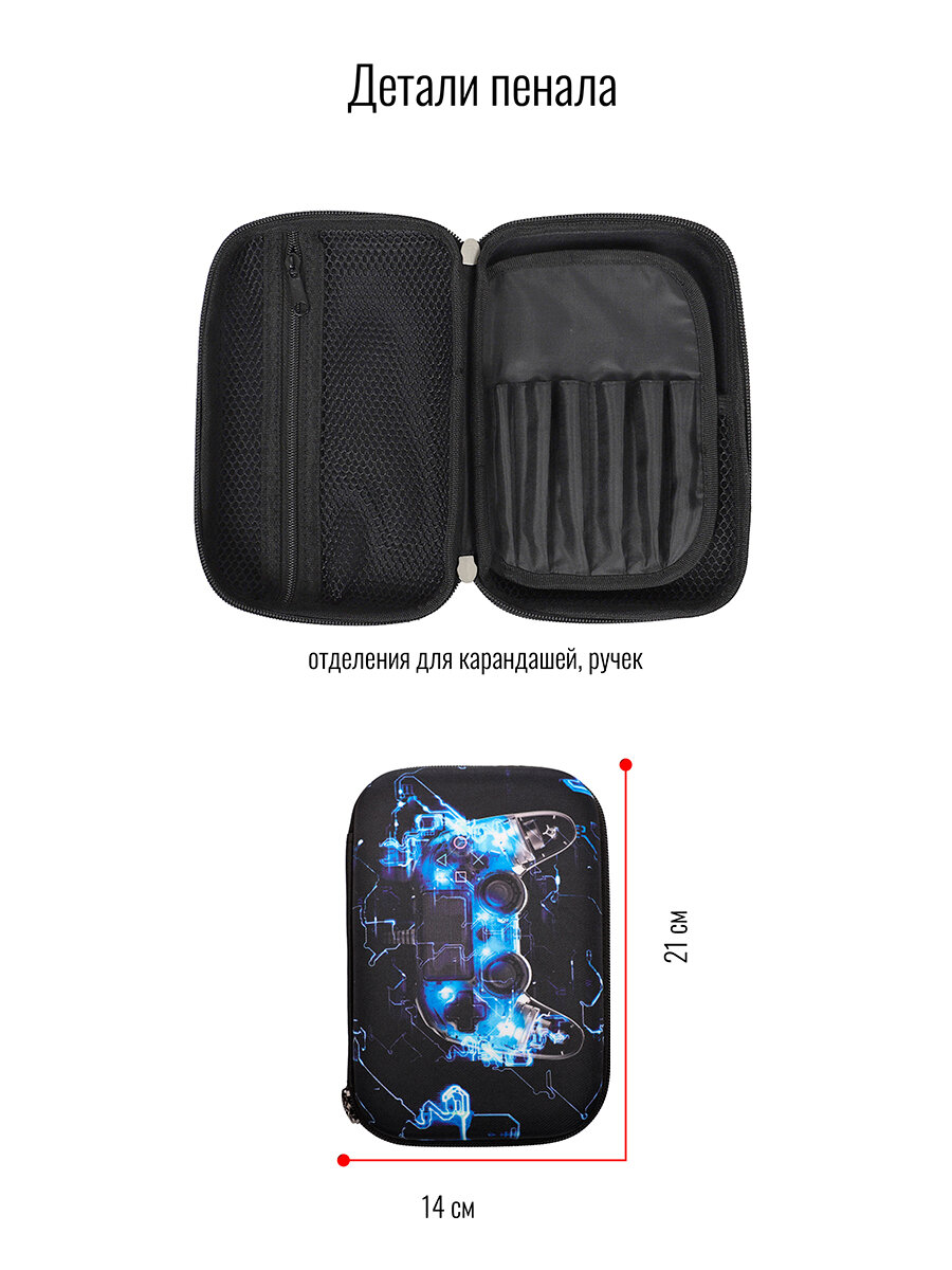 Формованный школьный пенал от российского бренда BagRio отлично подойдет для школьных занятий. Он легкий и водонепроницаемый. Имеет внутри: - сетчатый карман на молнии для удобного хранения различных канцелярских предметов; - карман на резинке c надежной фиксацией; - многофункциональный органайзер для письменных принадлежностей. Он оснащен прочными и износостойкими молниями и бегунками. Пенал бренда BagRio с модными принтами составят отличный комплект к школьным ранцам и мешкам для обуви.
