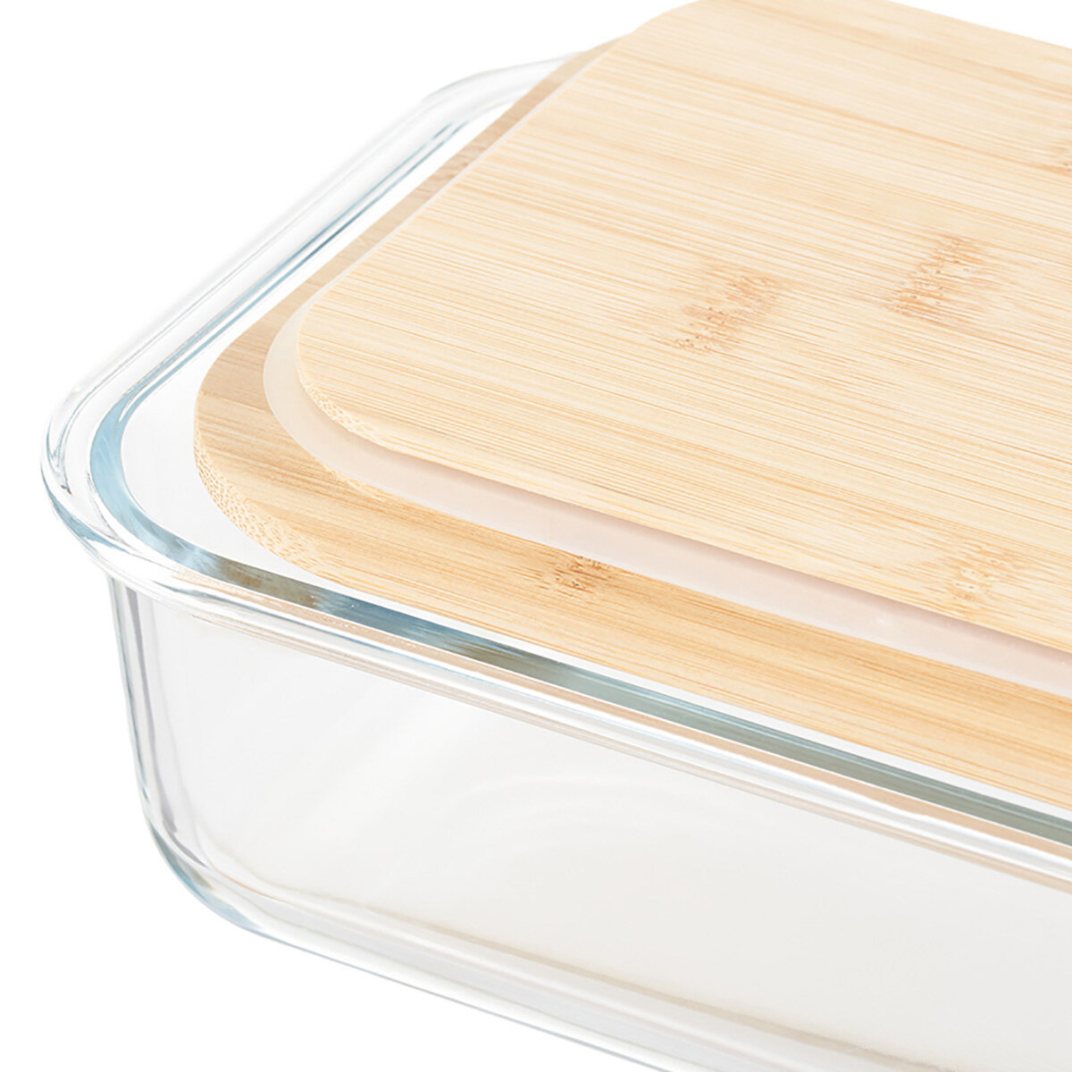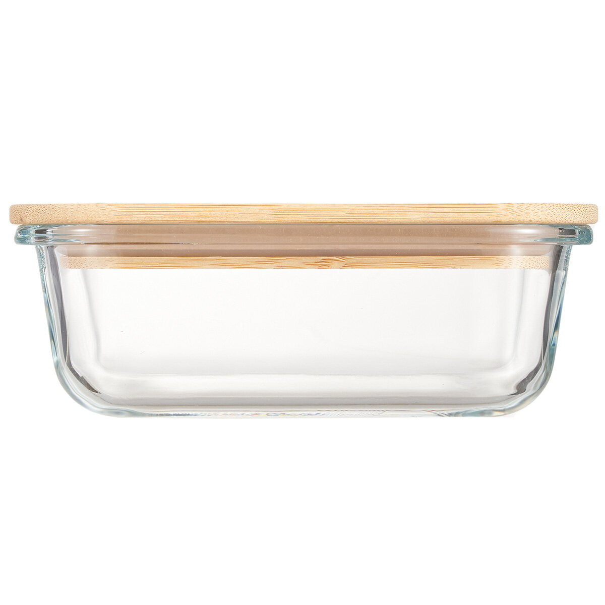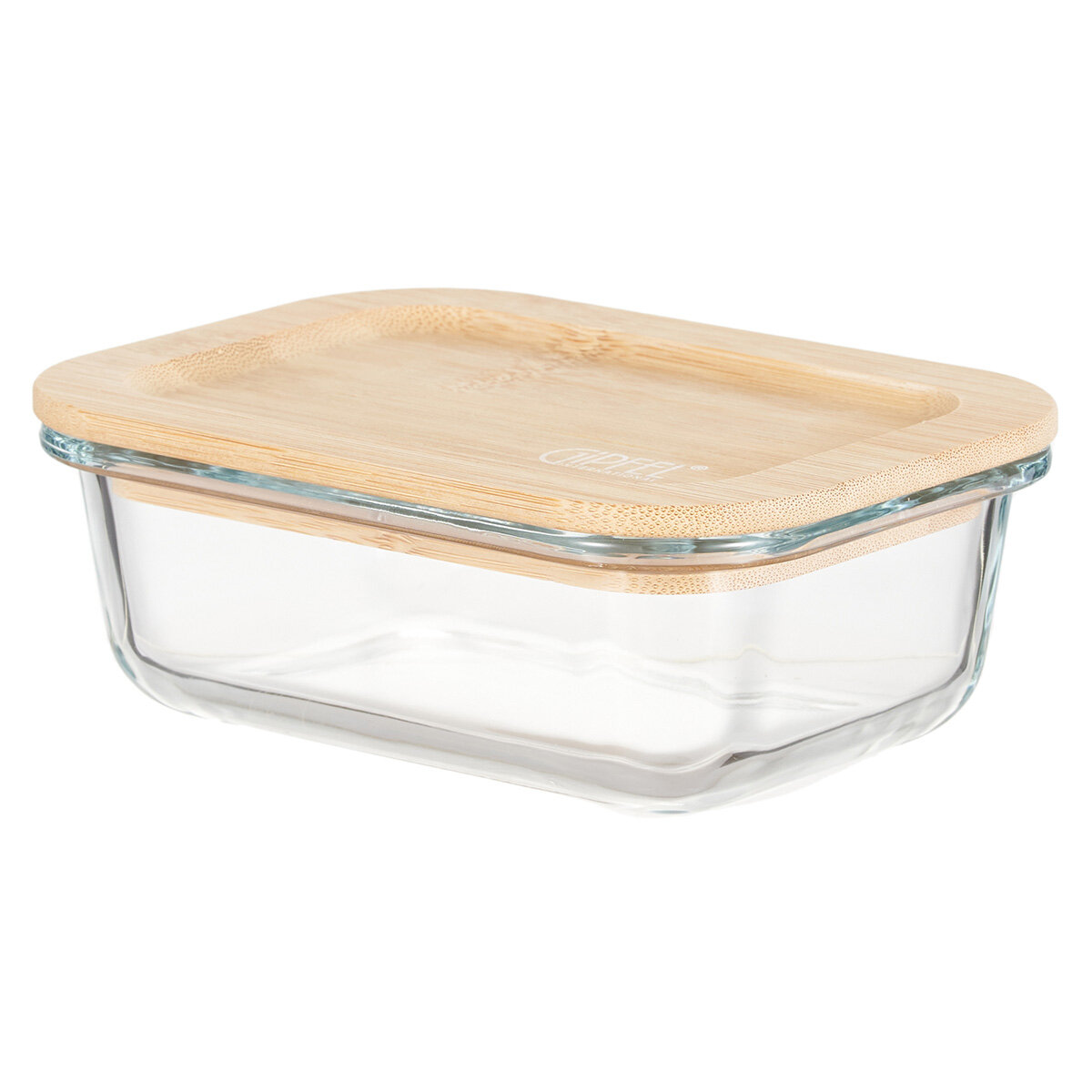 Контейнер Gipfel Stor 51953 прямоугольной формы размером 14,5х10,5 см, высотой 5 см. Объем 400 мл. В комплекте крышка из бамбука. Изготовлен из жаропрочного боросиликатного стекла.