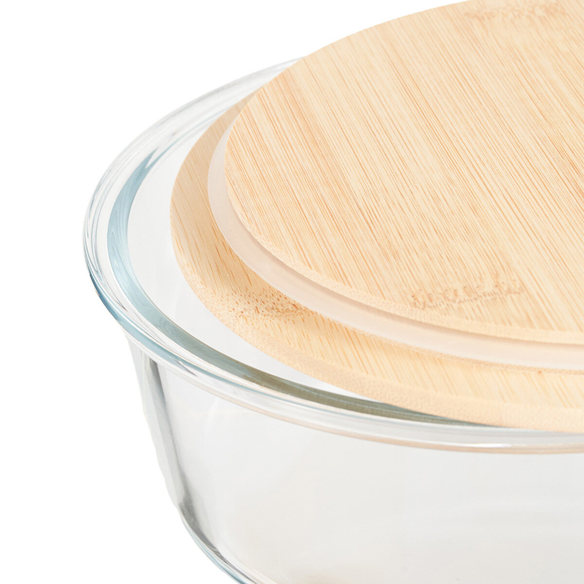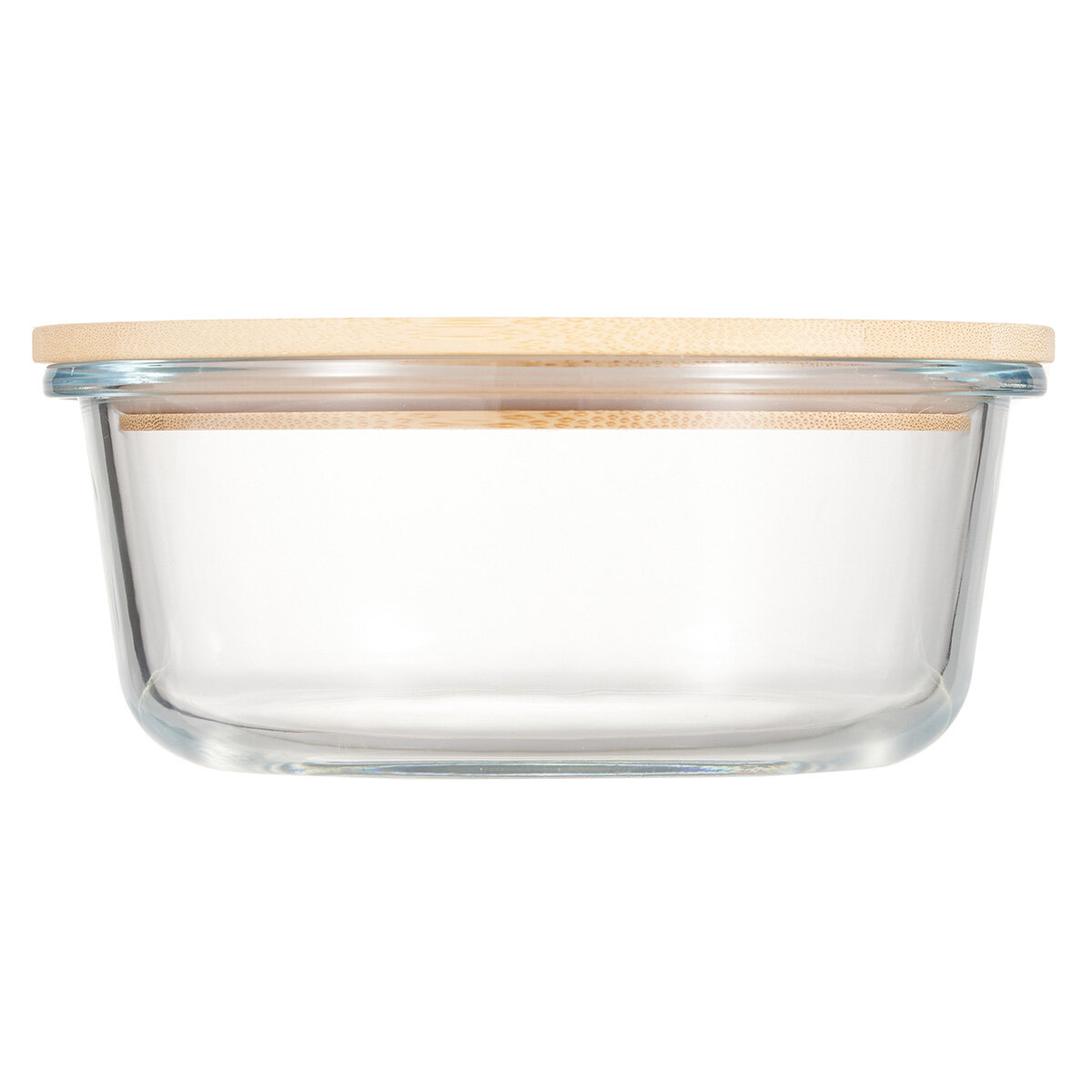 Контейнер стеклянный Gipfel Stor 51959 круглой формы диаметром 17 см, высотой 7 см. Объем 930 мл. В комплекте крышка из бамбука. Изготовлен из жаропрочного боросиликатного стекла.