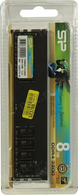 Модуль памяти Silicon Power SP008GBLFU320X02, объем 1 х 8GB, форм-фактор DIMM 288-pin, тип памяти DDR4, рабочая частота 3200MHz, unbuffered
